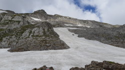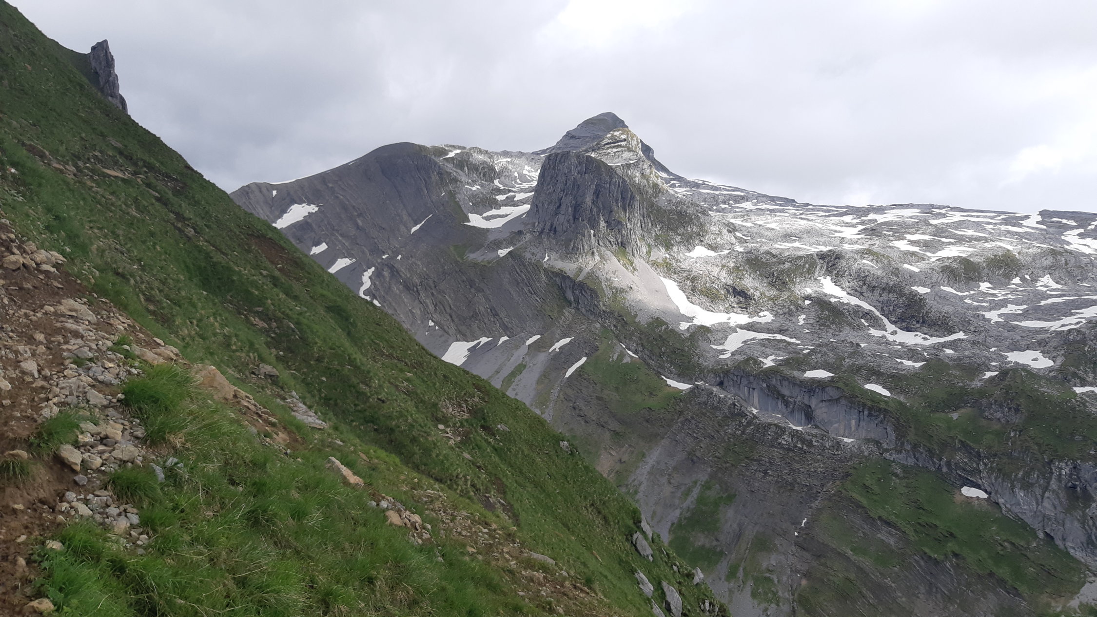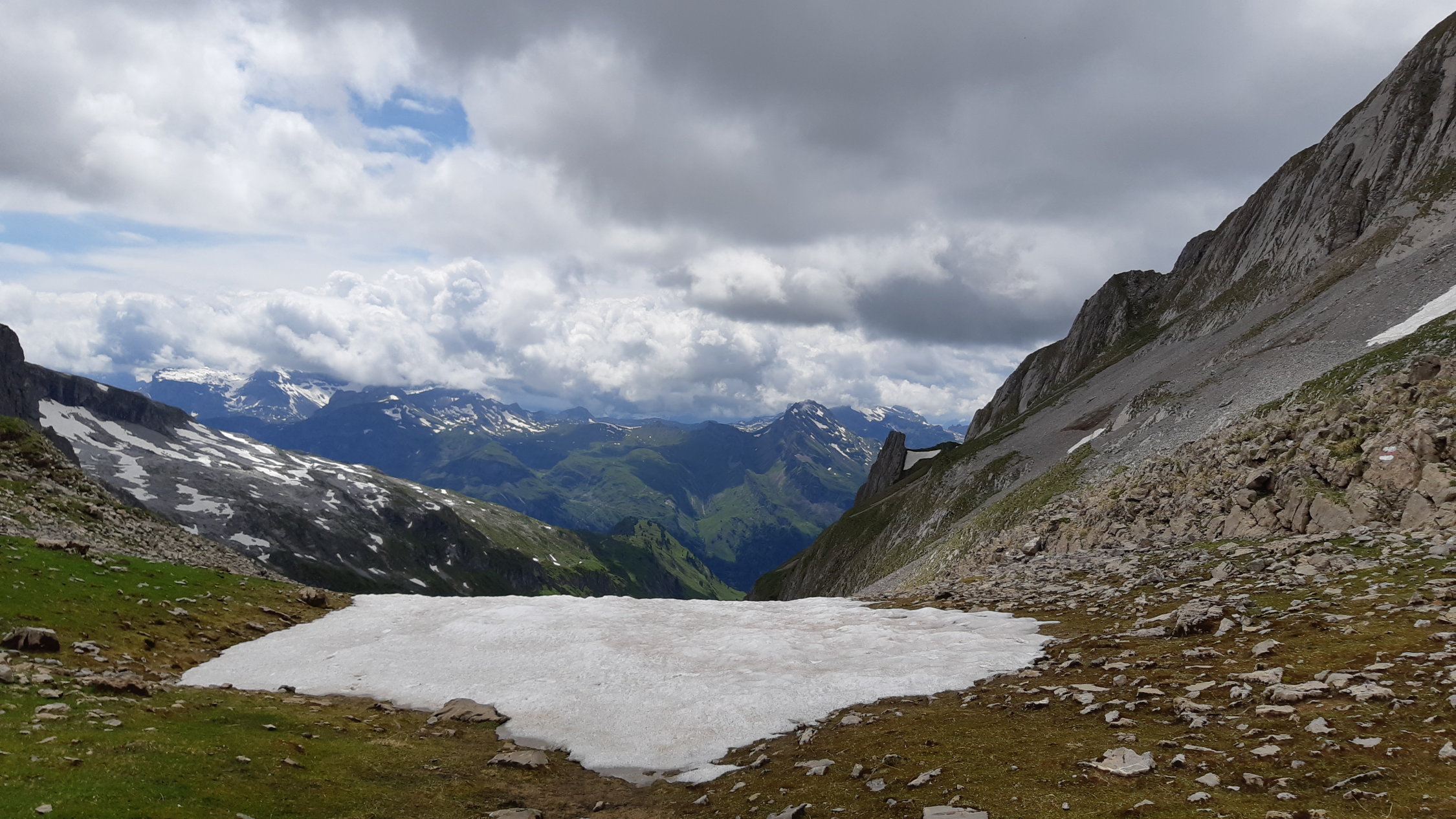 Ab etwa 2000m noch Schnee. Etwas mühsam im steilen Schneefeld zum Chratzerenfurggeli. Die lange Traverse nachher ist noch ziemlich matschig