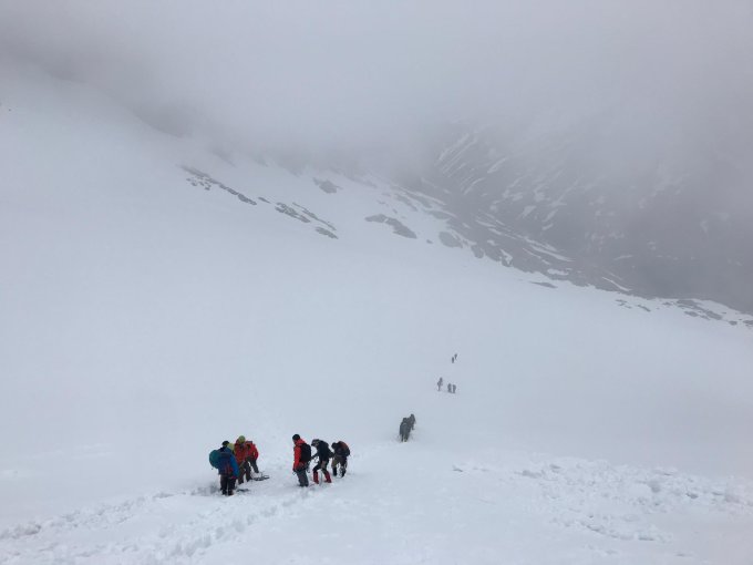 Trittschnee auf vorhandener Spur rel. gut, daneben sehr weich und grosse Einsinktiefe