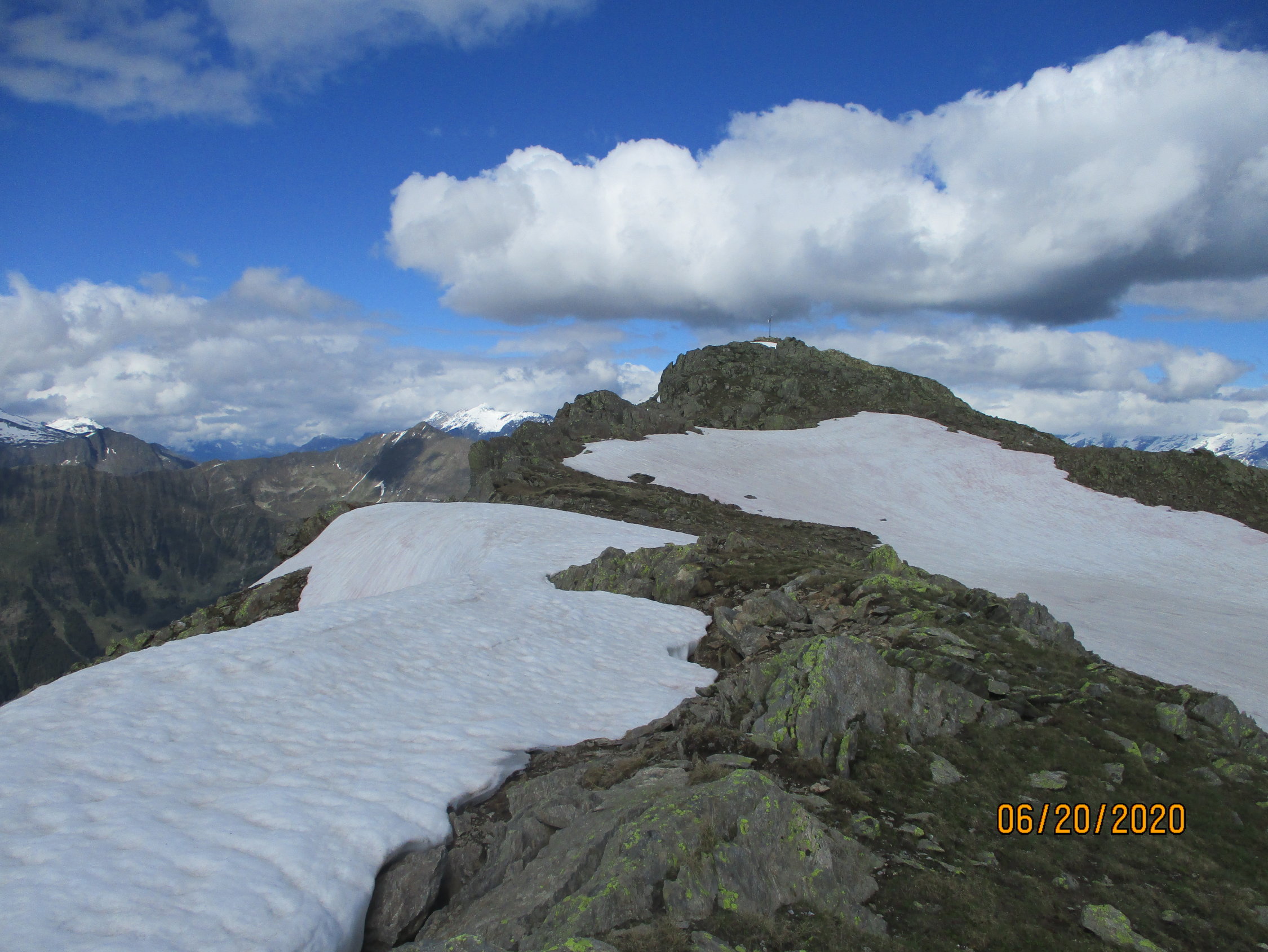 Ab ca. 2200 hat es noch Schneefelder, die mit zunehmender Höhe teils beträchtliche Ausdehnungen aufweisen. Auf dieser Route verursachten sie jedoch keine nennenswerten Probleme. Ich bin dem oberen Teil der Schuttflanke nach rechts ausgewichen, und habe somit die Schulter umgangen. Diese Variante ist wohl etwas weiter, aber moderater bezüglich der Steilheit.