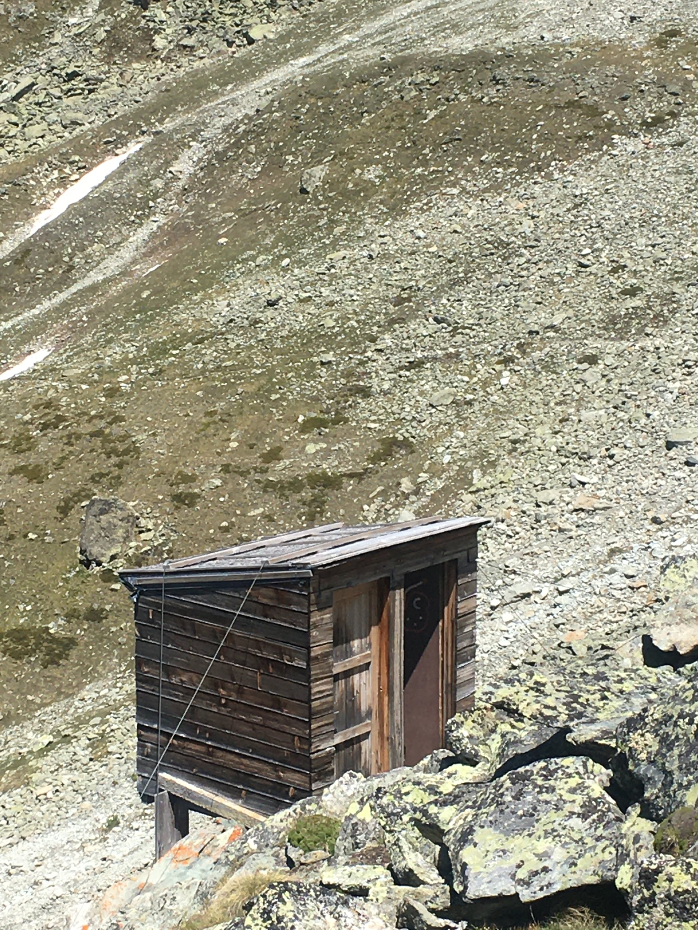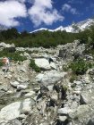 Start Campingplatz Arolla 9 Uhr, 7 Grad, windstill. Man kommt direkt vom Campingplatz auf der Ostseite des Baches direkt zum Wanderweg, der die Westflanke zur bewarteten Hütte hinaufführt.
