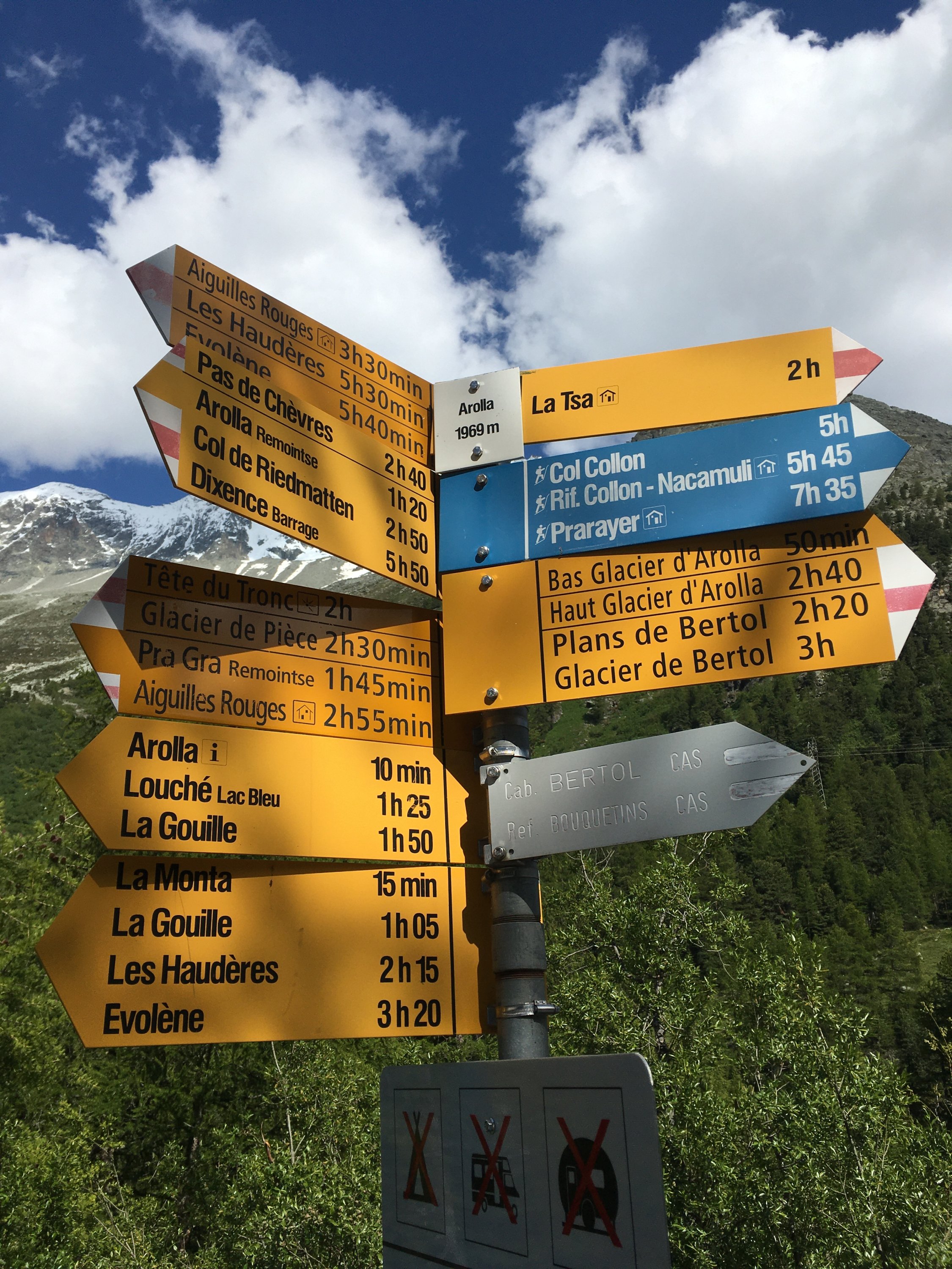 Tolle Wanderung unter der imposanten Felsnadel Aiguille de la Tsa 3663 m. Schöner Blick zur Pigne d‘Arolla 3787 m. Die Hütte der Société des Guides du Val d'Hérens ist durch die charmante Diana Dipoia geführt und man bekommt auch etwas zu Essen. Sehr Empfehlenswert. Sehr schöner Campingplatz nähe Arolla.