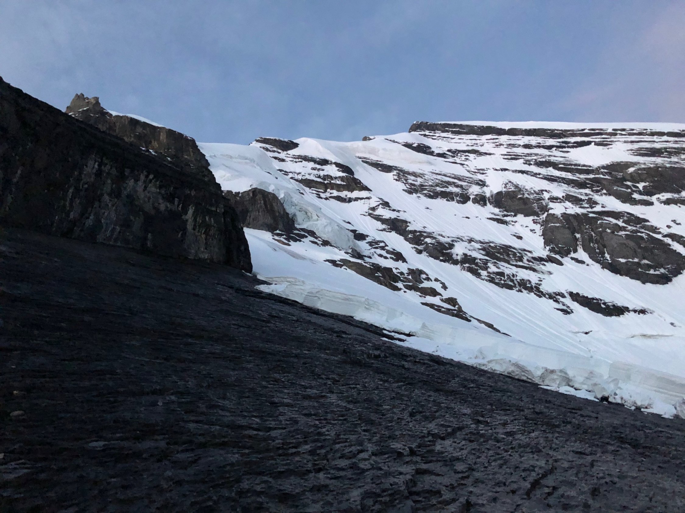 Abstieg auf dem Gletscher problemlos. Ab dem Spitze Stei zügig gehen da man sich im resp. am Rande des Bergsturzgebiets befindet.