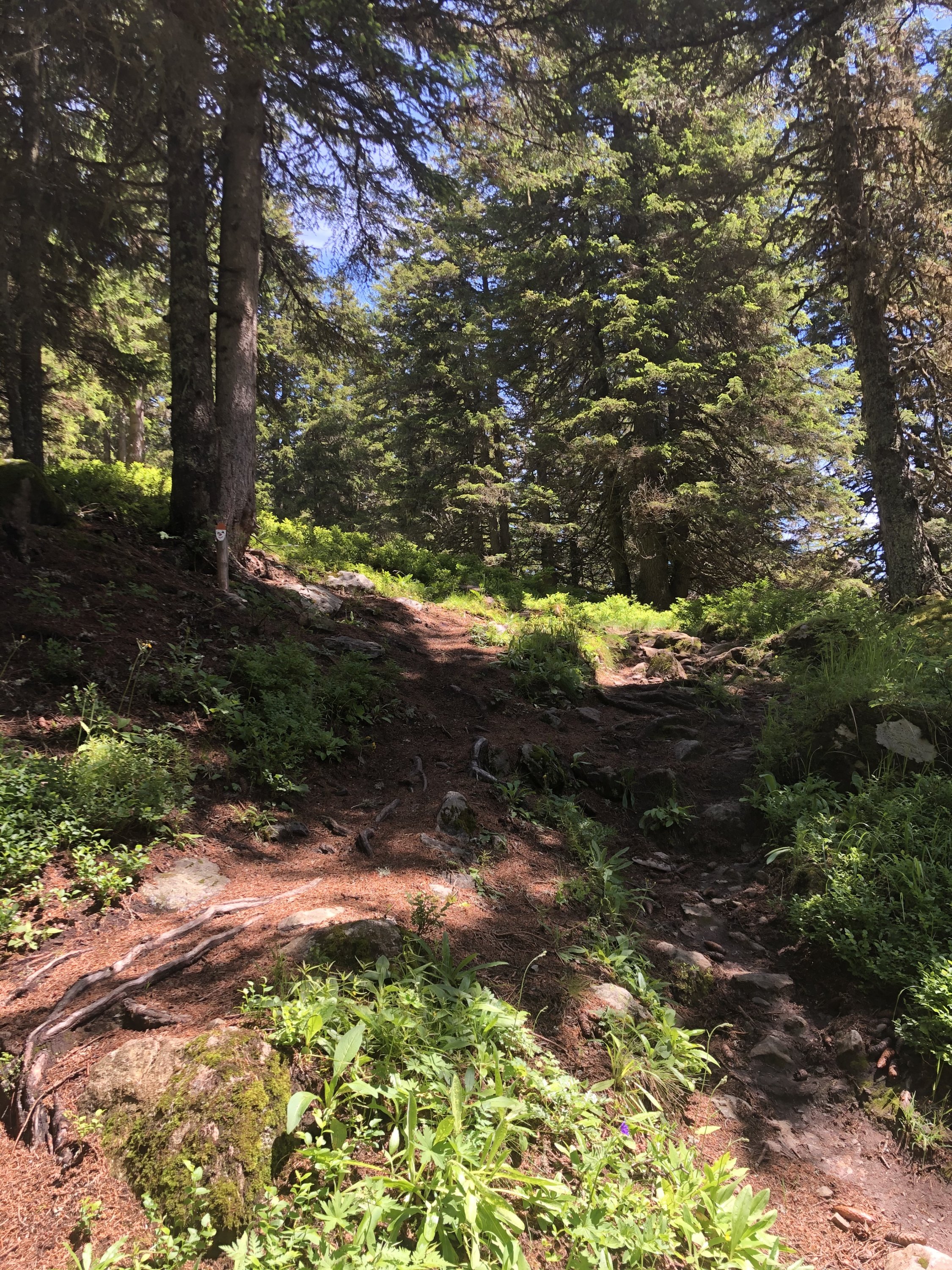Aufgrund der Regenfälle der vergangenen Nacht, war der Weg teilweise nass uns das Wurzelwerk rutschig. Jedoch war der Aufstieg problemlos zu bewältigen und die Sonne trocknete den Weg rasch ab.
