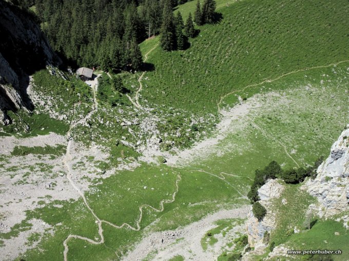 Morgens im Schatten, ab Mitte der Route dann Sonne. Warm und Fels trocken. Routenfindung v.a. unten anspruchsvoll. In der ersten Seillänge hat's nur einen Bohrhaken...