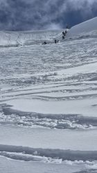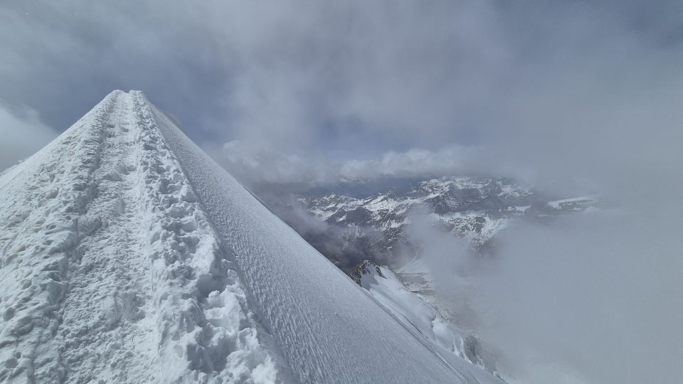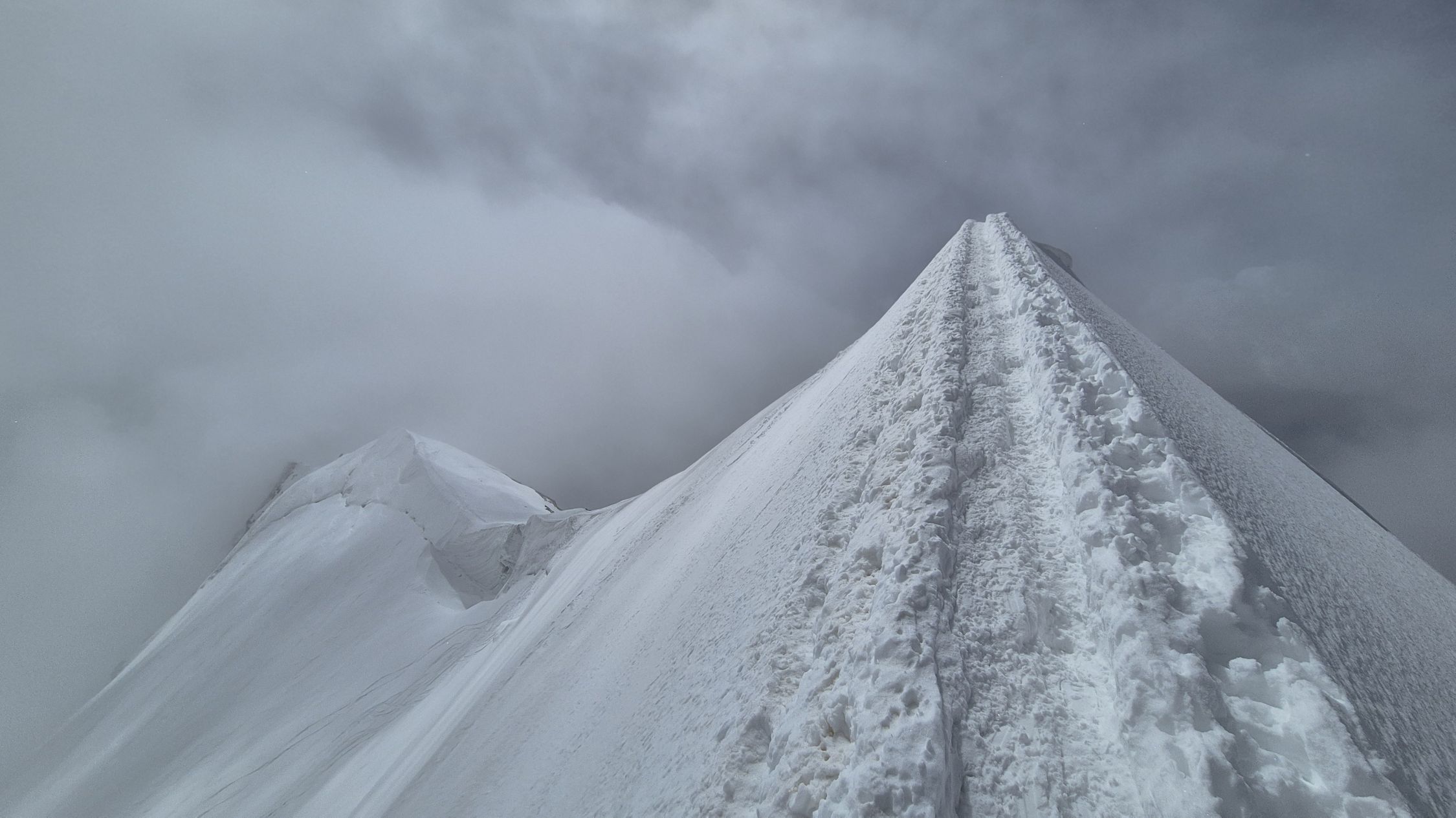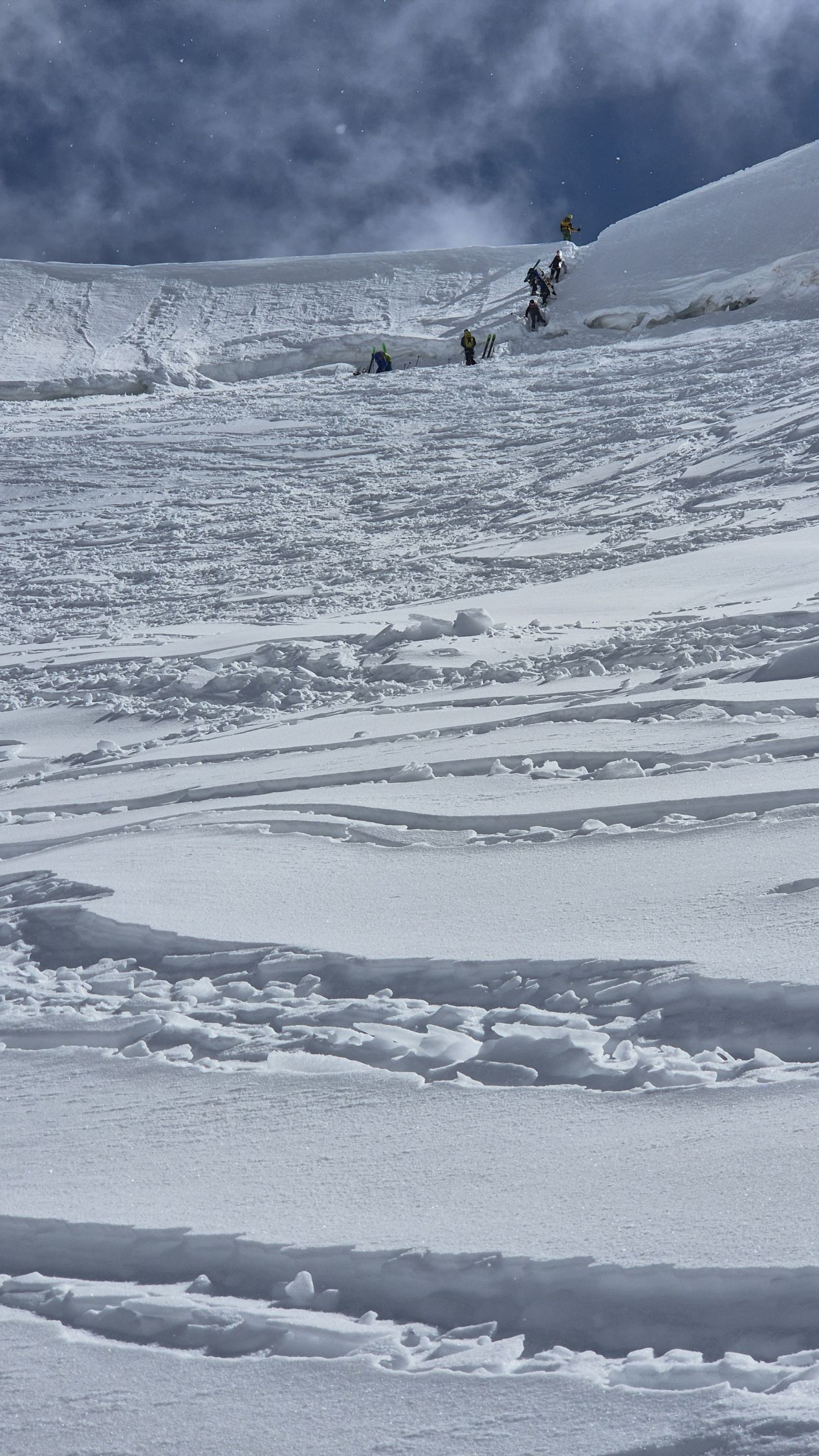 Gute Ski- und Steigeisenspur. Bergschrund problemlos zu überwinden und einfach auf den Grat. Grat wunderbar zu gehen.