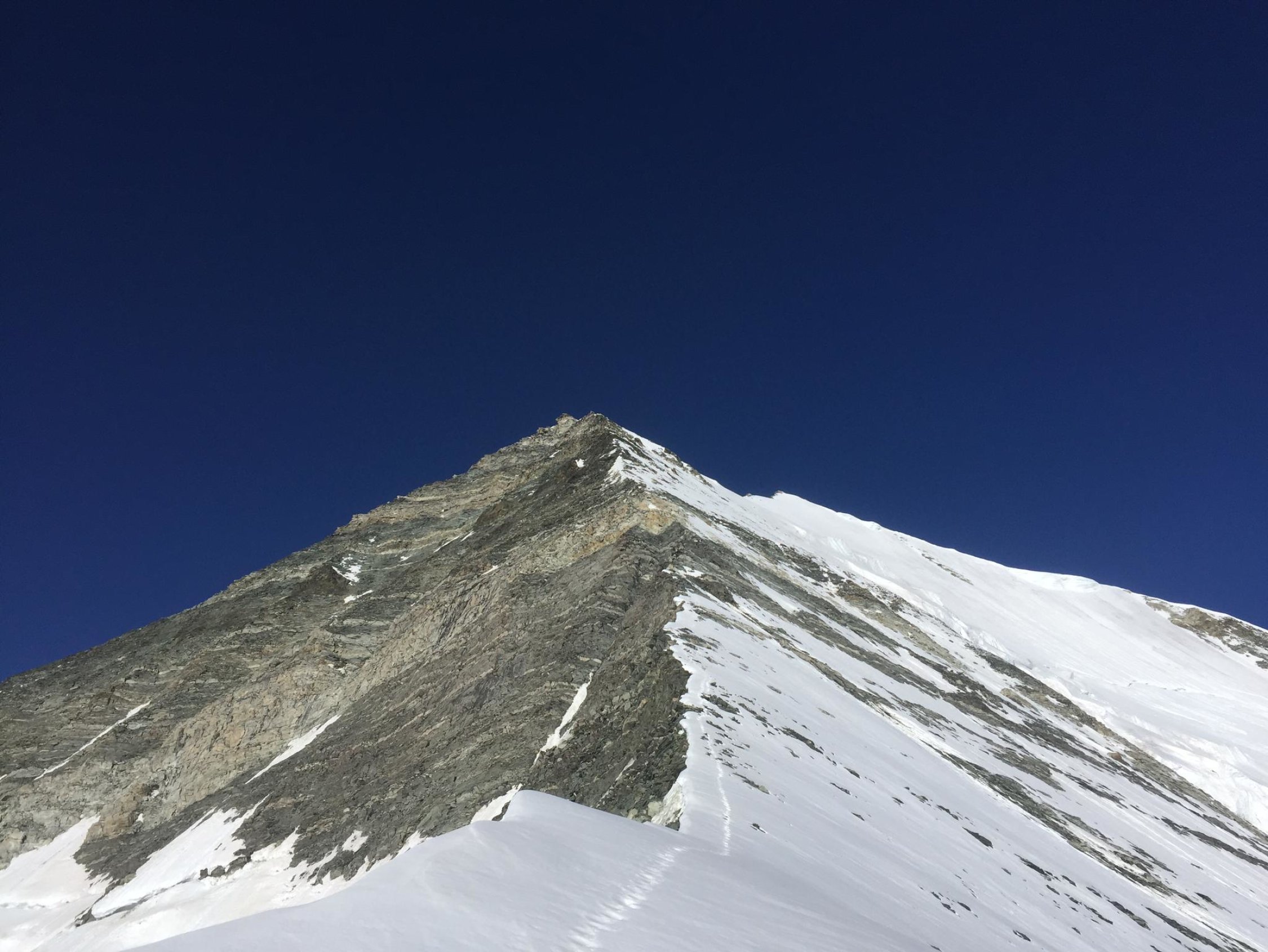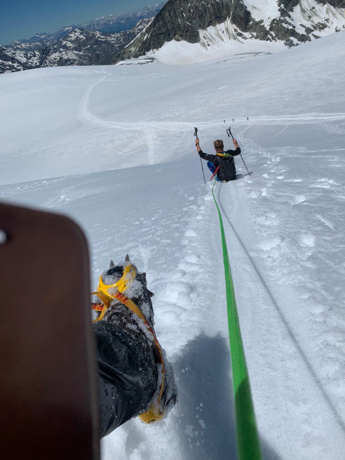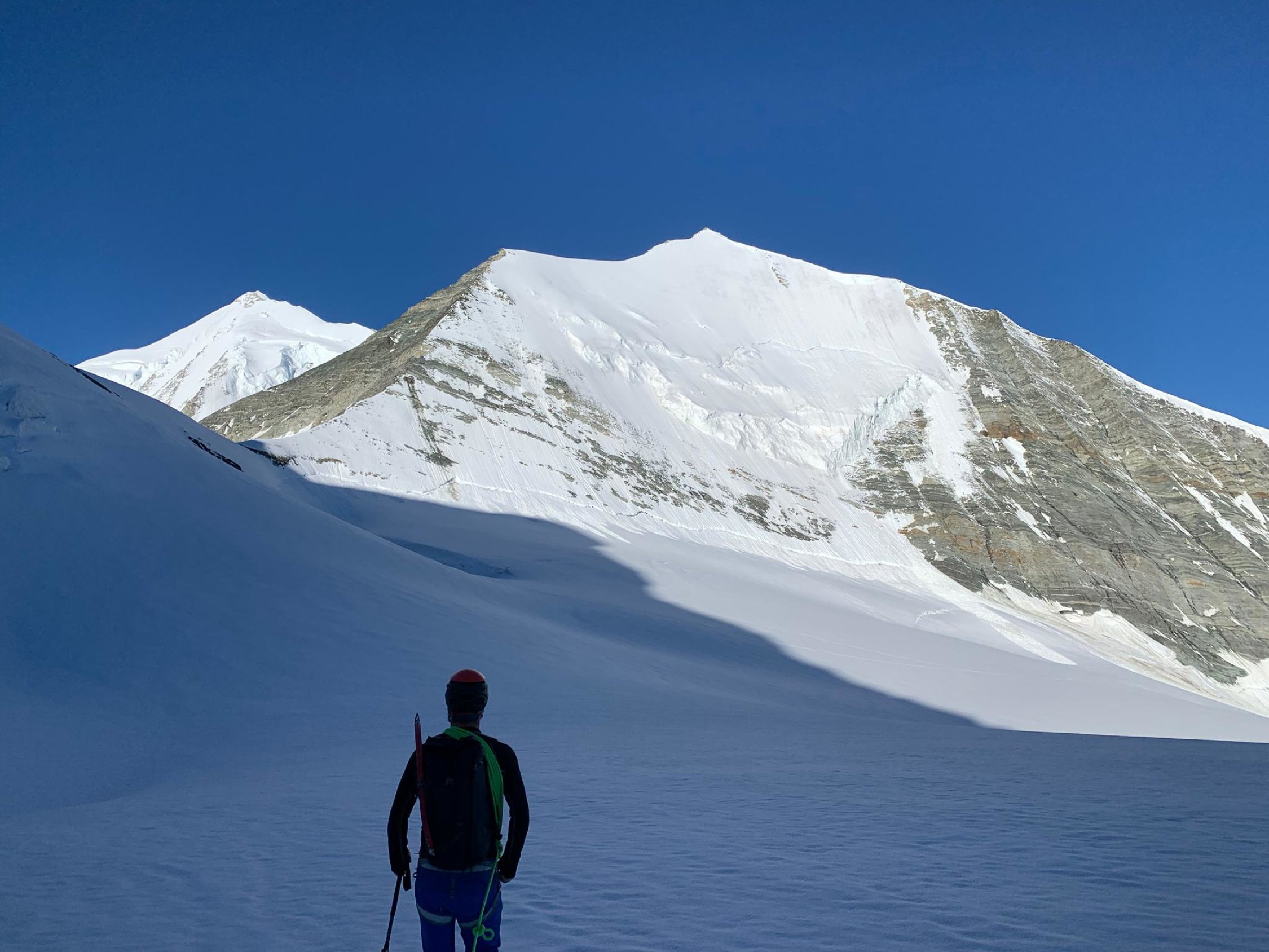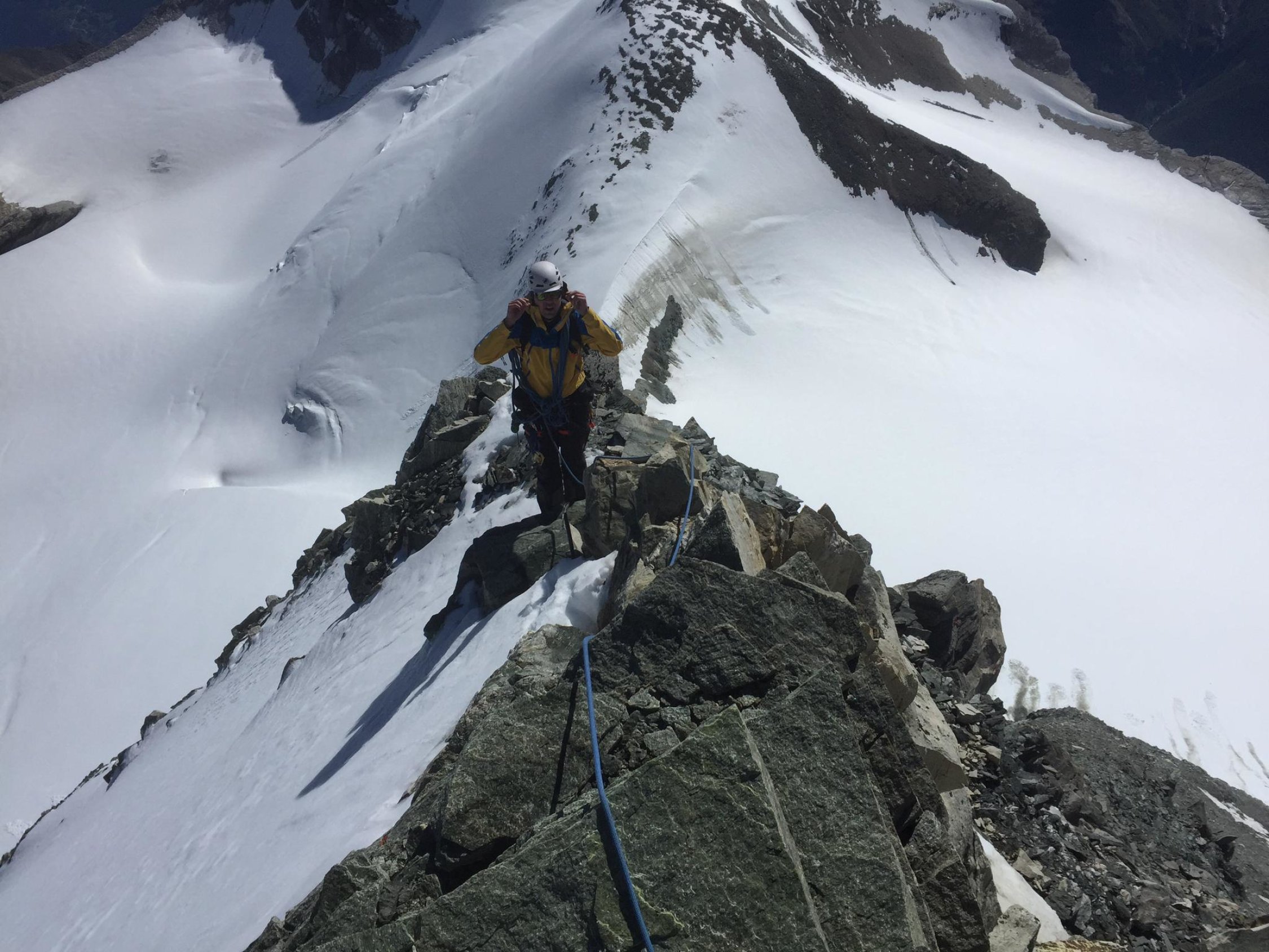 Oben auf dem Firngrat herrlich! Unglaubliches Panorama! Entschädigt für die unteren Strapazen und Schweissperlen.