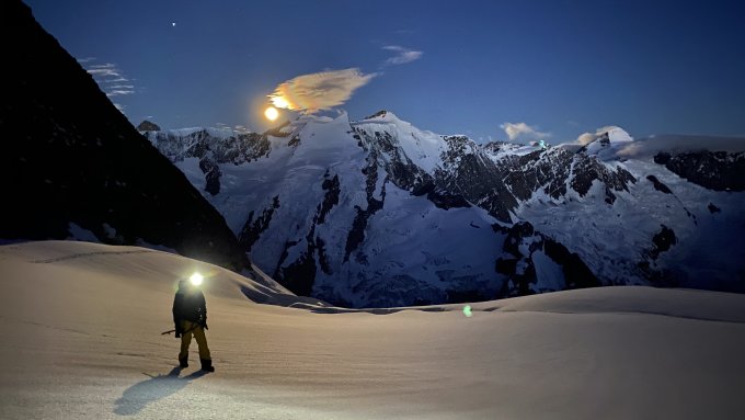 Grundsätzlich Top-Verhältnis auf der Normalroute auf das Schreckhorn! Trotzdem ist Vorsicht geboten. Der Übergang vom Gletscher zum Fels geht mit dem Fixseil recht gut, obwohl ein grosser Spalt klafft. Das Fixseil führt direkt zum roten Punkt, der mittlerweile 10 Meter oberhalb des Gletschers zu sehen ist. Bis zur Rippe folgt man den roten Punkten. In diesem Bereich fließt viel Schmelzwasser über die Felsen, bei uns war es leicht angefroren. Die Rippe bis auf ca. 3850m ist Schneefrei. Ab dieser Höhe liegt relativ viel Schnee in der Region, die Kletterstellen sind jedoch Schneefrei. Wir sind alles ohne Steigeisen geklettert. Den Wunsch die Besteigung das Lauteraargrat zum Lauteraarhorn mussten wir verwerfen, es liegt einfach viel zu viel Schnee drin und das wird noch ein Weilchen so bleiben. Das abseilen geht zum Glück rech gut, nimmt aber viel Zeit in Anspruch.
