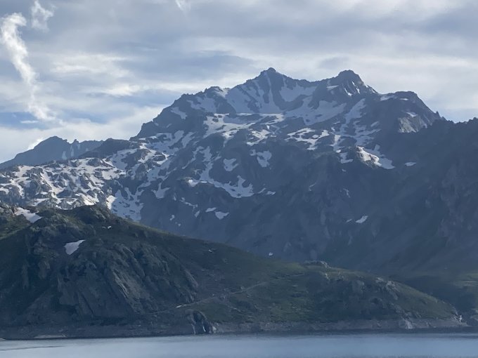 Noch viel Schnee in der Gipfelflanke, deshalb Klettern über plattige Rippe auf Gipfelgrat.
