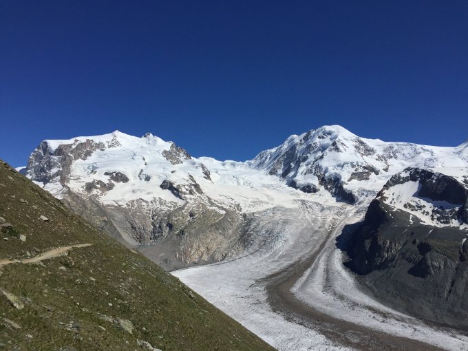 Gletscher gut begehbar (sogar allein), wenn ich auch den Normalweg zwischendrin mal verloren hatte und mich in einer Art Labyrinth wiederfand, aber der Gletscher ist OK, und der Übergang vom Normalweg direkt rüber zum Einstieg über den dort topfebenen Gletscher ja sowieso problemlos.