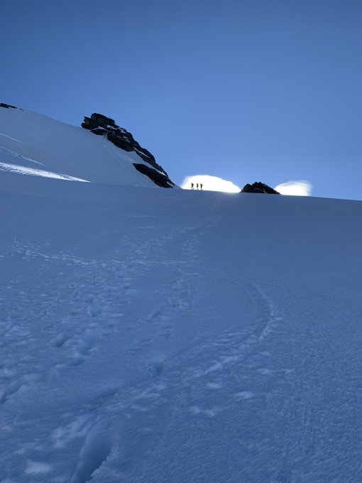 Von der Station Klein-Matterhorn in bestem Trittschnee bis zum Sattel. Von dort in perfekter Spur bis zum Einstieg. Wir haben die Eisen bis hinter das erste Couloir anbehalten. Die restliche Kletterei konnte ohne genossen werden. Teilweise sind noch kleine Schneefelder in der Route zu passieren. Der Schnee ist aber kompakt und somit kein Problem.
