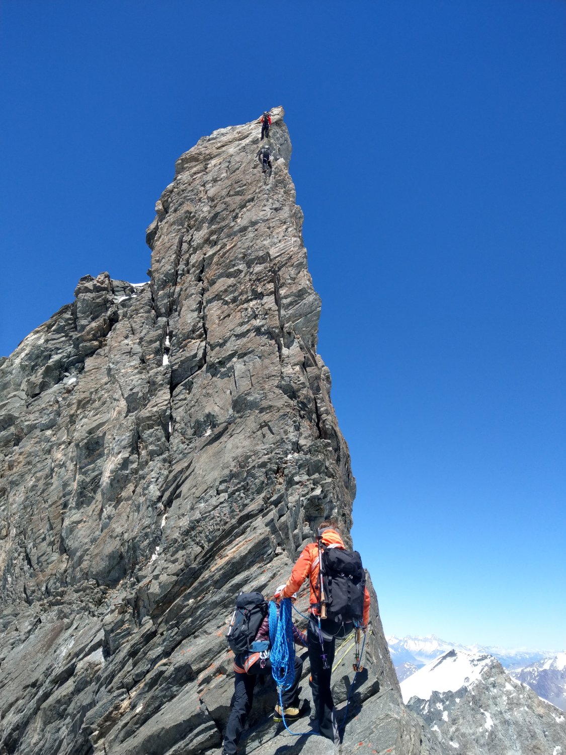 Rimpfischhorn (4199m): Nordgrat im Abstieg