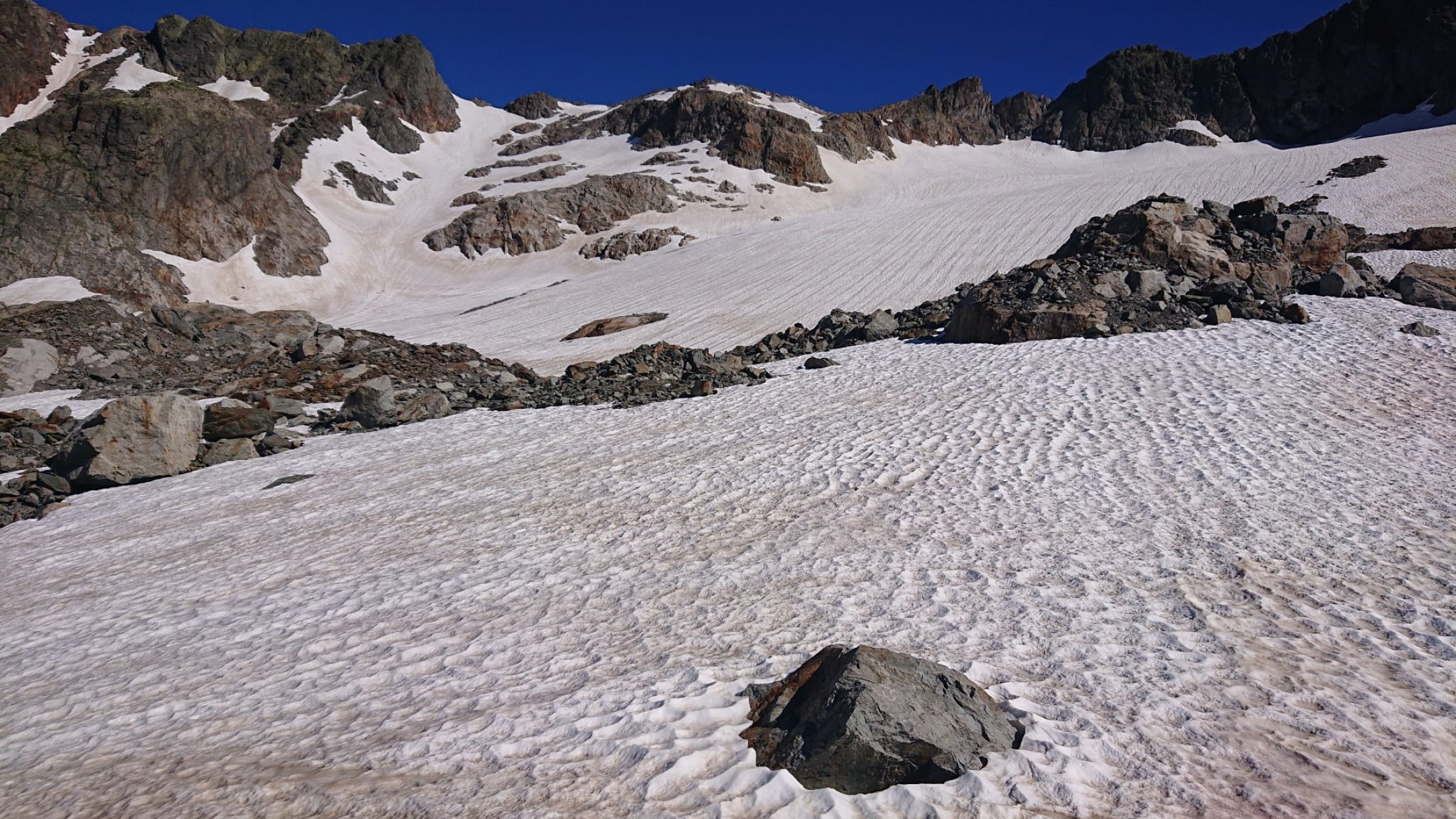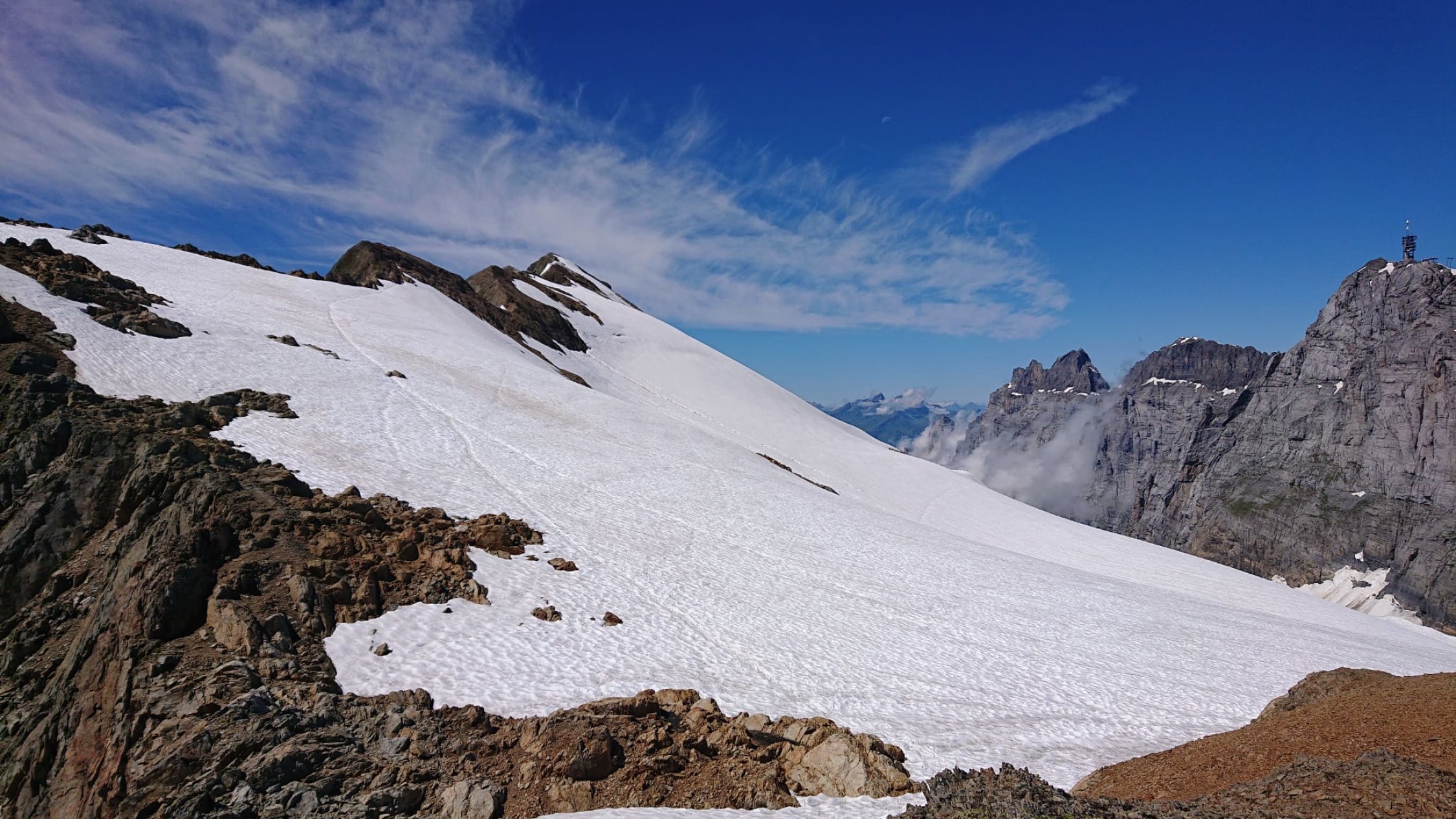 Ab Stössifirn alles noch gut mit Schnee gedeckt. Schnee dann schon leicht angesulzt.