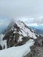 Der Starke Westwind war etwas mühsam am Grat/Rücken. Im Windschatten war es super angenehm. Sulz vom Gipfel bis auf 1680 M.ü.M.
