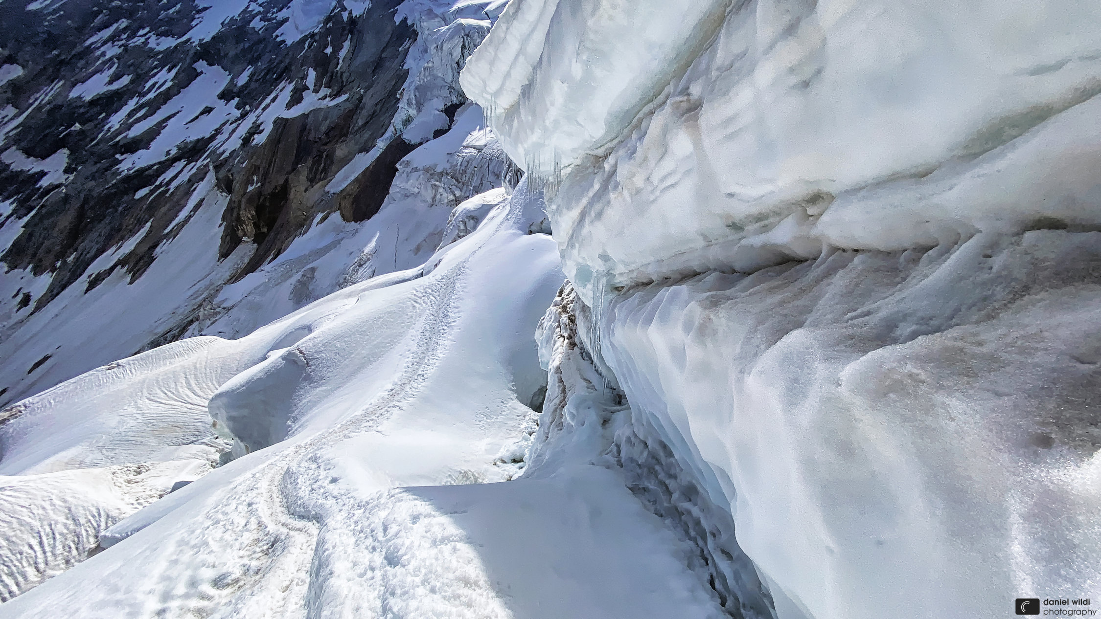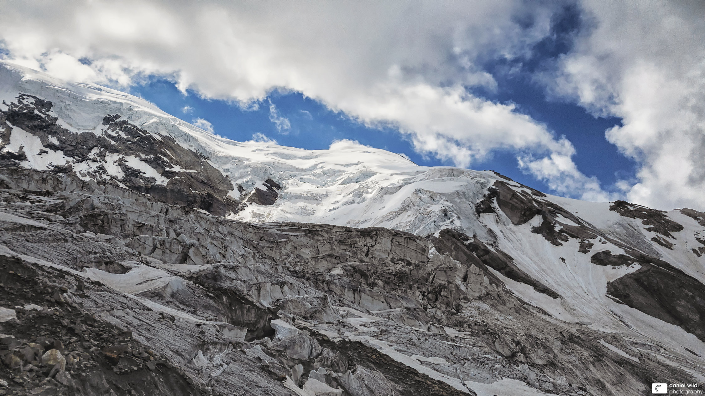Abstieg Normalroute Richtung Hohsaas in perfektem Zustand. Möglichst früh los und wieder runter, grösserer Schnee-/Eisabgang während Abstieg beobachtet...