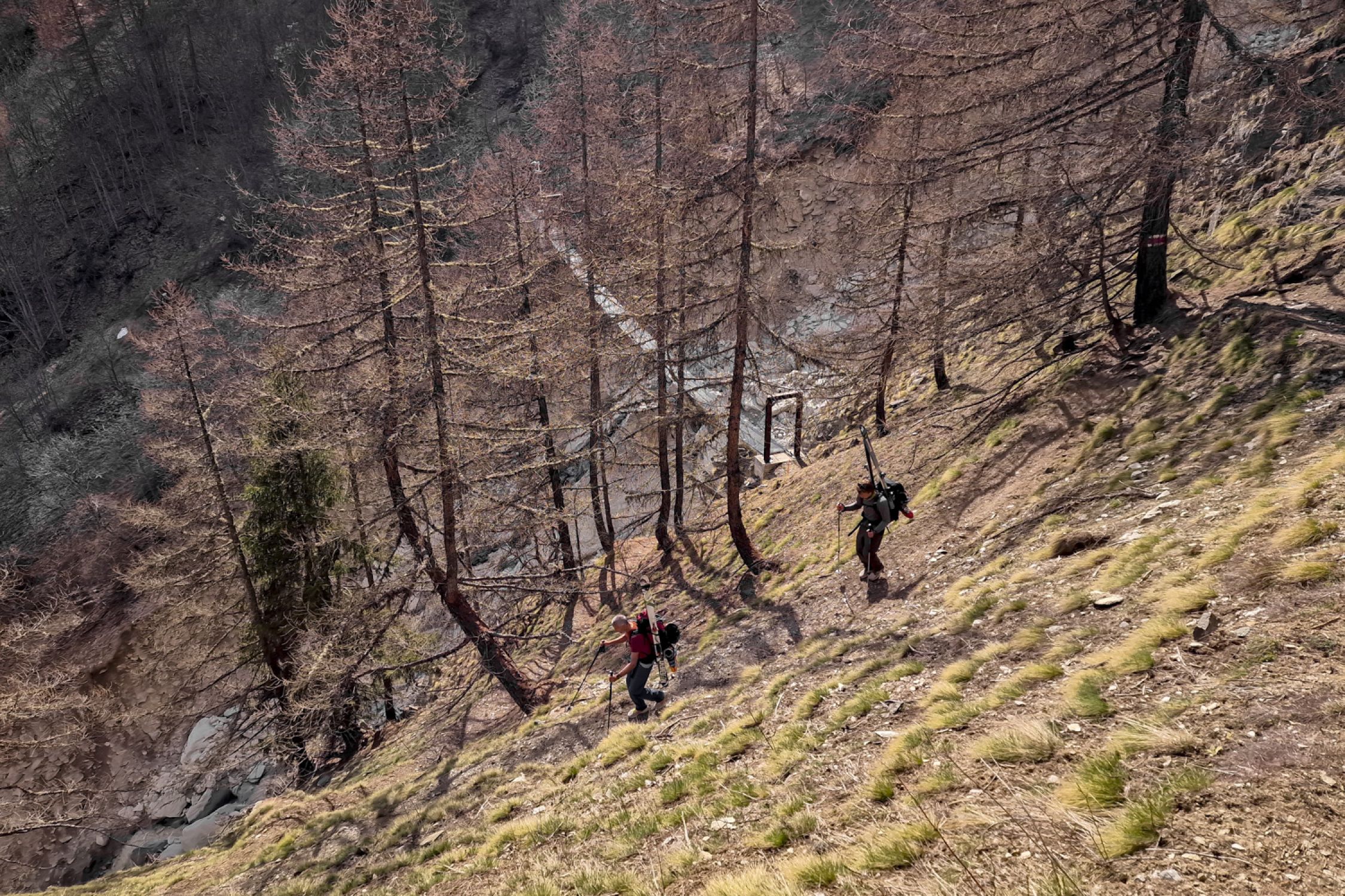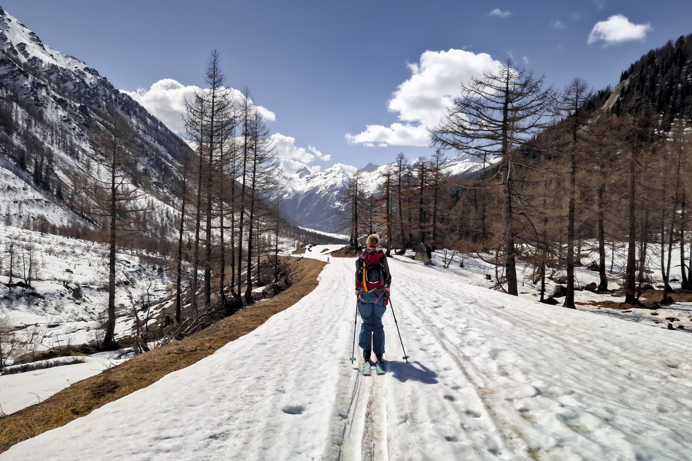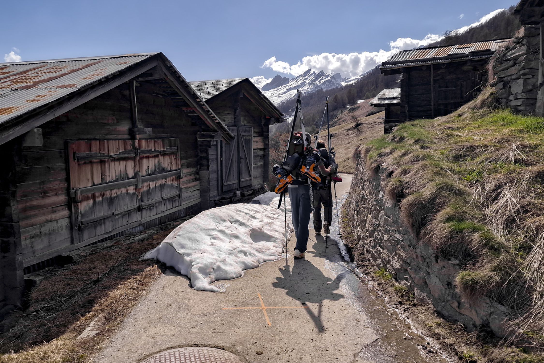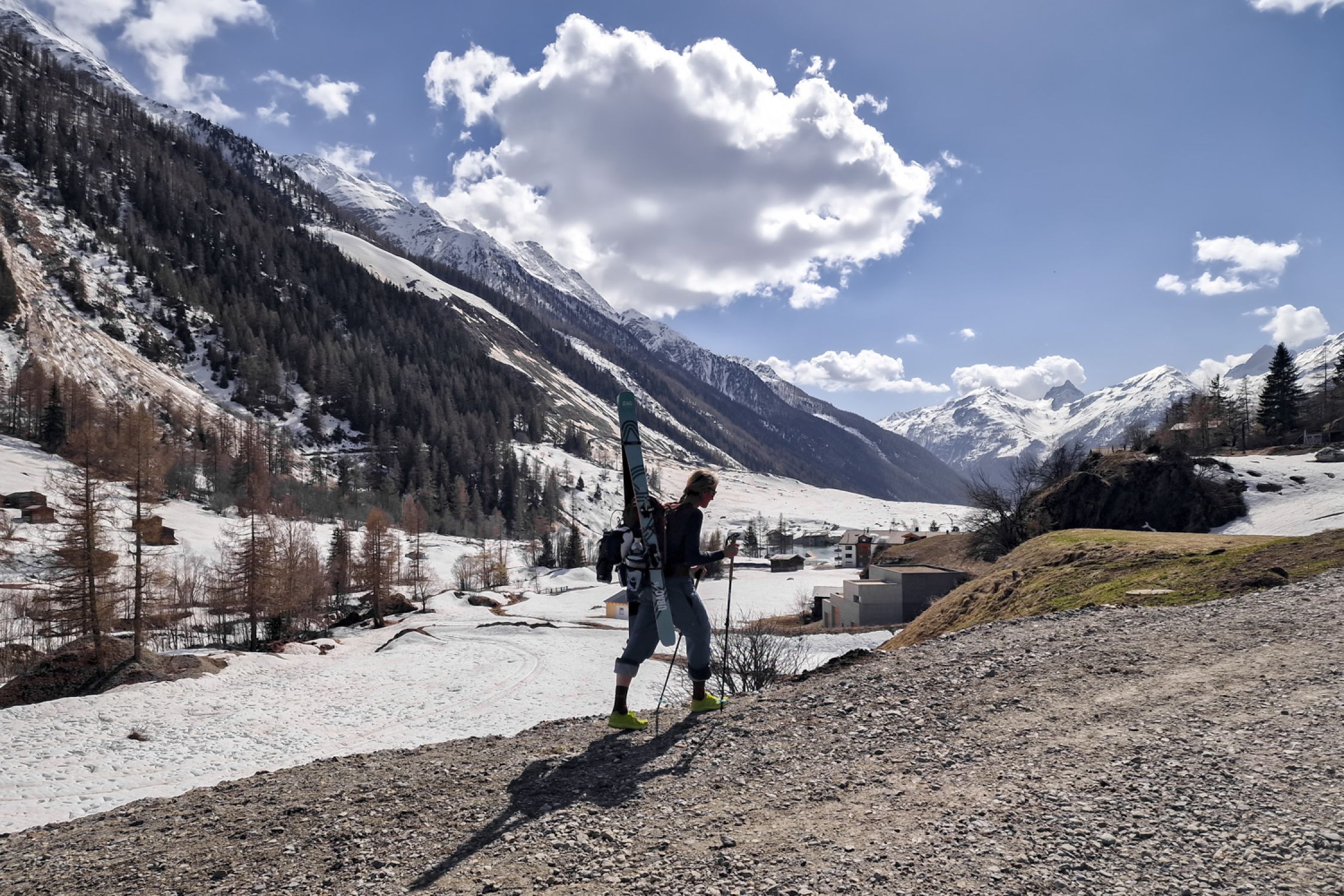 Bis Fafleralp hatte es noch viel Schnee. Von der Fafleralp nach Blatten alles auf der Strasse - nur kurz ein paarmal die Ski tragen. Ab Blatten auf der Notstrasse/auf dem Wanderweg alles schneefrei.