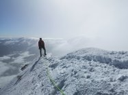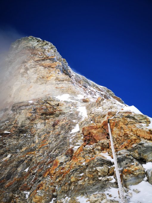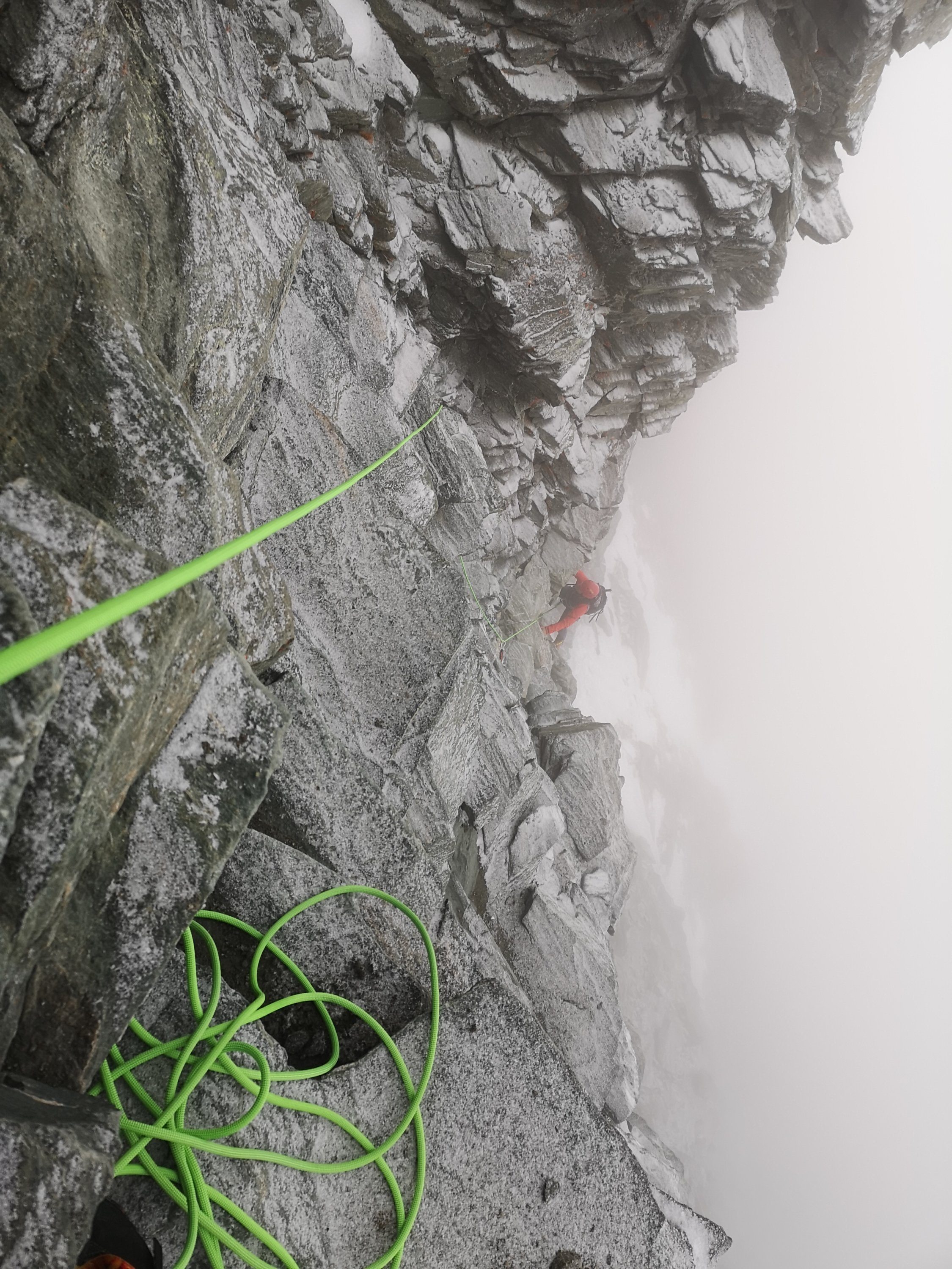 gestern im Höhensturm auf den Gipfel, Fixseile und Felsen vereist