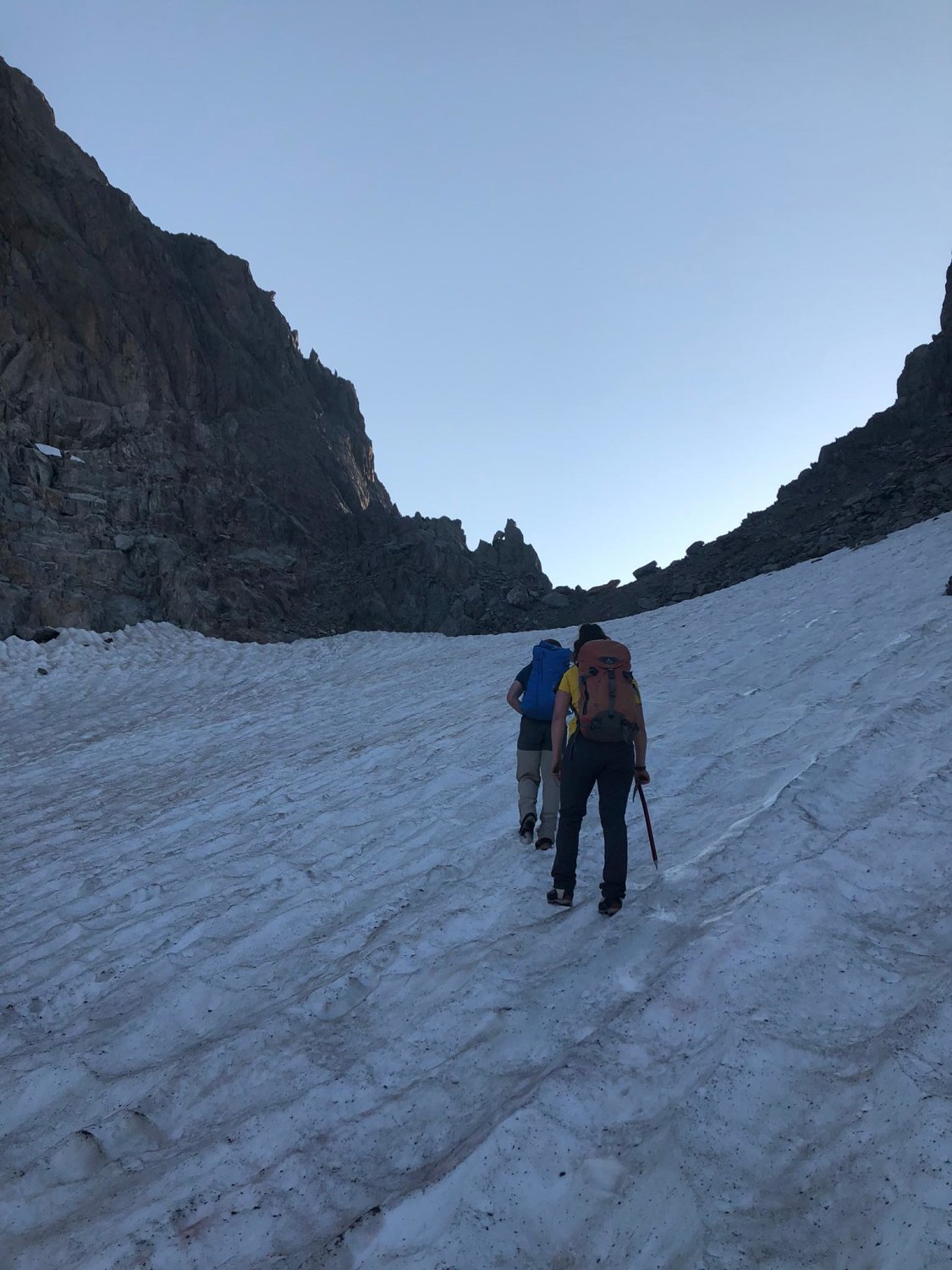 Top, Schneefeld zum Einstieg perfekter Trittschnee (ohne Steigeisen)