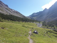 Die Abfahrt nach Sertig ist bis Pkt 2518 (Abzweigung zur Fanezfurgga) etwas für Freunde der gepflegten Rollschotterabfahrt :-), nichts für mich. Nachher eigentlich alles gut und spassig fahrbar. Ein paar kurze Stellen im Tobel des Ducanbach habe ich geschoben, für weniger Ängstliche aber sicher fahrbar, da eigentlich keine techn. Schwierigkeiten. Ausrollen nach Sertig und nachher auf der SchweizMobil Route 647 nach Clavadel (Achtung Wanderer, brav Vortritt gewähren)
