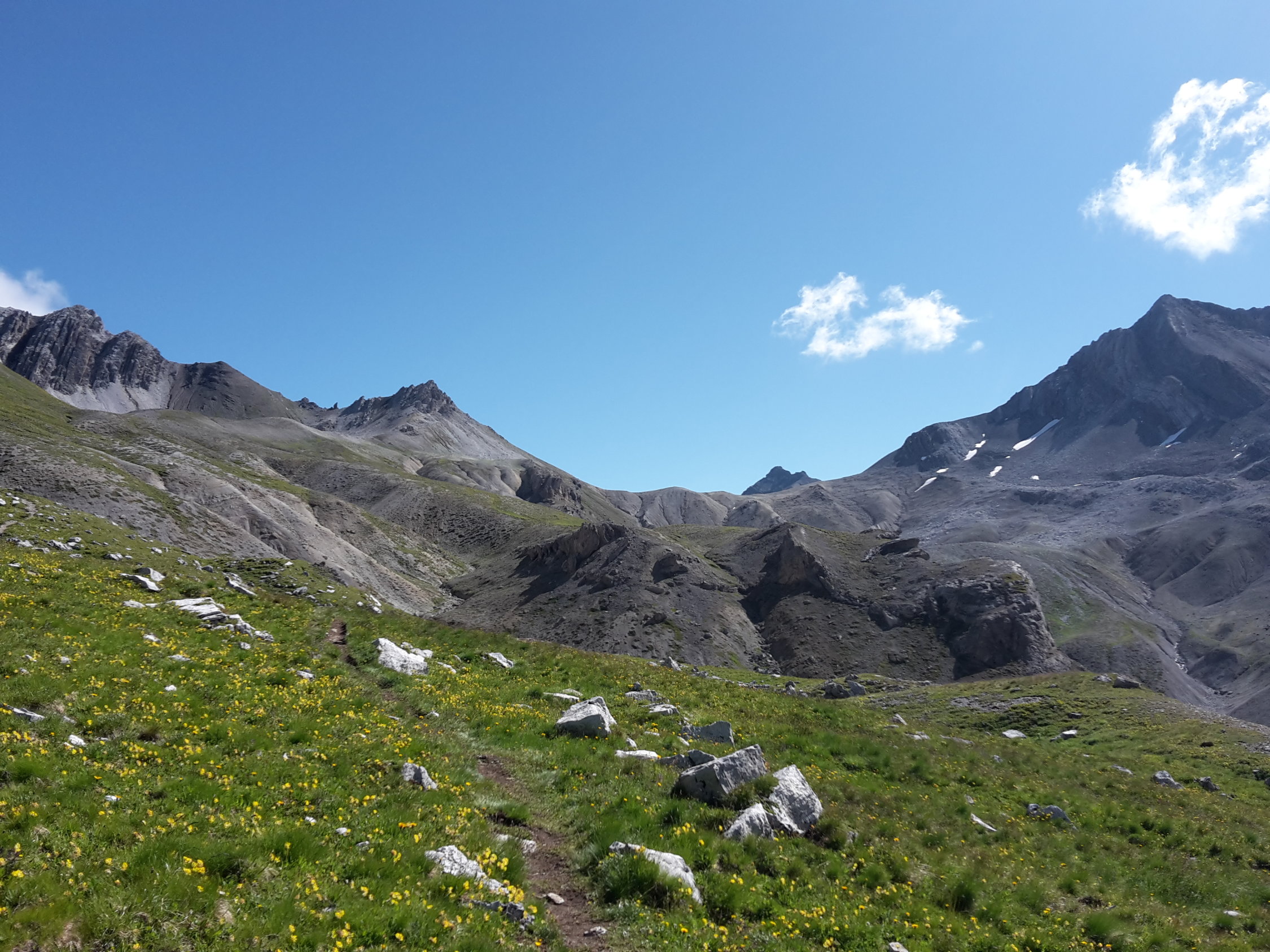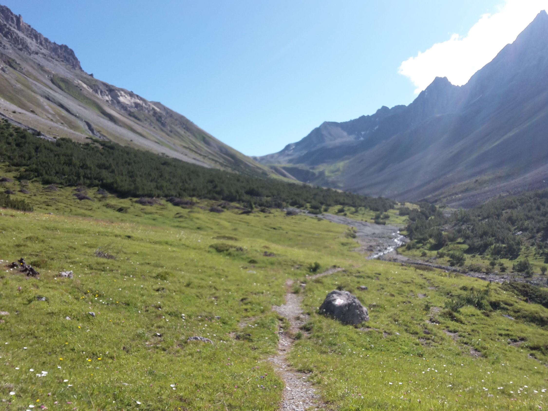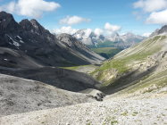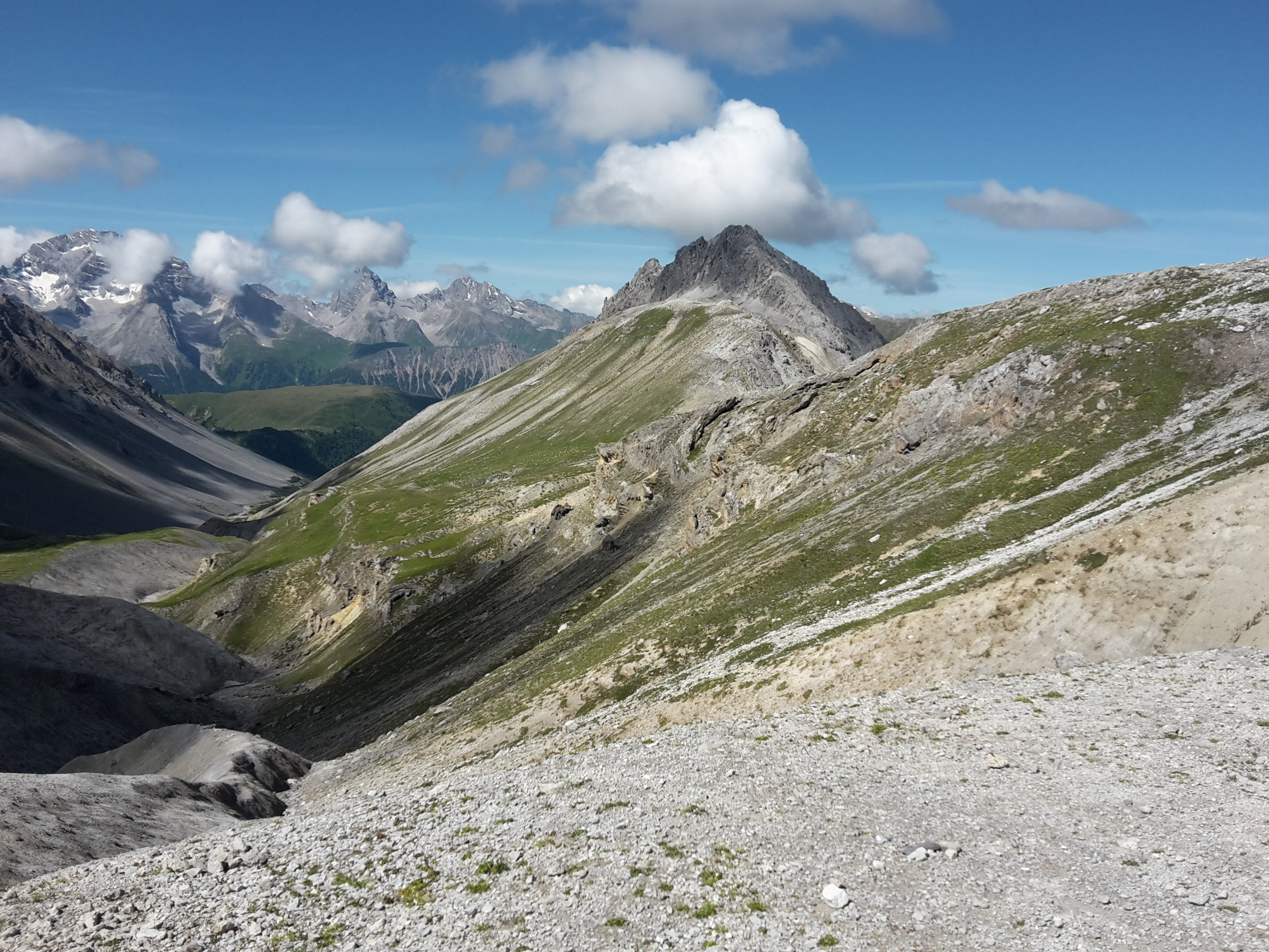 Start um 8:15 beim Bhf Bergün. Ich bin direkt hoch nach Stuls und nicht wie in der Routenbeschreibung via Latsch. Nach der Brücke in Runsolas musste yours truly schieben, zu steil. Es wird aber bald wieder fahrbar bis Alp da Stugl, nachher bis Pkt. 2251 je nach Temparament und Fahrkönnen fahrbar, ich habe zeitweise trotzdem geschoben. Ab Pkt. 2251 ist definitiv fertig lustig: das Bike muss etwa bis Pkt. 2393 getragen werden (über eine tiefe Rüfe), nachher wirds wieder flacher und auf 2600m kann wieder gefahren werden. Die kurze Abfahrt zur Furgge war yours truly zu steil und zu rutschig.