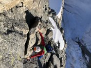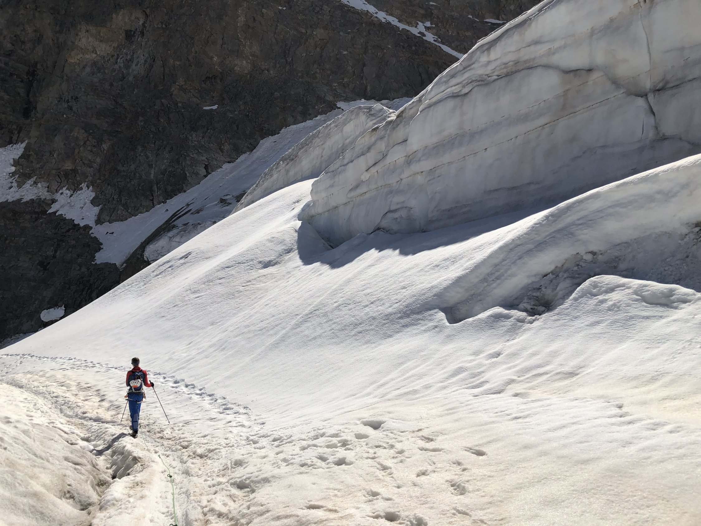 Der Felsteil dann trocken und perfekt mit Kletterschuhen zu klettern. Die Routenführung ist klar gegeben und kaum zu verfehlen. Bis auf 2-3 Stellen wird der (obere) 4te Grad eigentlich nie überschritten und die Kletterei macht so richtig Laune!