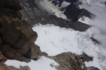 Im Abstieg haben wir zum grossen Teil abgeseilt. Bis zur Schulter hatte es sehr gute Stände, danach muss man etwas nach Schlingenständen suchen gehen. Die letzte Abseilstelle auf der "Rotpunktroute" erfordert etwas pendeln um sie zu erreichen. Unser 50m Seil hat durchwegs gelangt. Durch das Abseilen sind wir sicher aber auch sehr spät zur Hütte gekommen.
