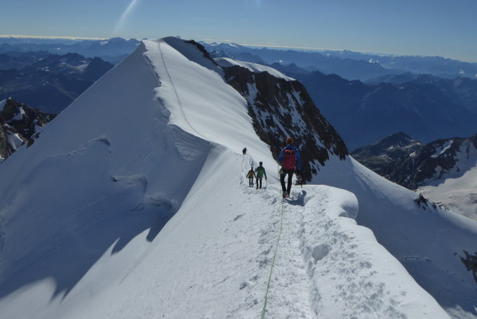 Übergang vom Piz Bianco zum Bernina weniger Schnee als bei meiner ersten Besteigung (2015)