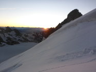 Top. Felsen schneefrei. Guter Trittfirn auf dem Gletscher. Nettes Biwak oberhalb der unteren Hütte in der Moräne. Dadurch langer Gipfeltag (+1h) Direkter Aufstieg an der Gletscherrampe ist was für die Waden ;-)