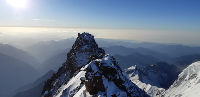 Dufourspitze (4634m): Westgrat (Nomalroute) von Monte Rosa Hütte