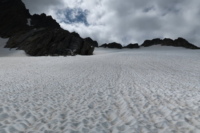 Momentan perfekte Bedingungen - Auf dem Gletscher noch durchgehend Schnee, Übergang zum Grat problemlos, oben alles schneefrei und trocken.