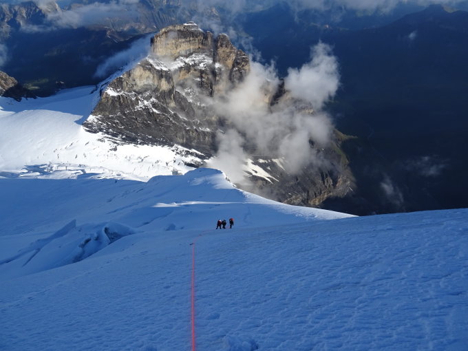 Wir sind über den Bluemlisalpgletscher gegangen, der ziemlich viele Spalten hat. Hier empfiehlt es sich alternativ den Weg über die Wildi Frau zu nehmen