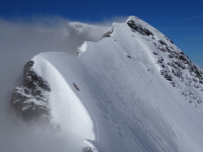 eine Super-Tour mit Wahnsinns-Ausblicken, vielen Dank an die junge Schweizer-3er-Seilschaft fürs Spuren ;-)