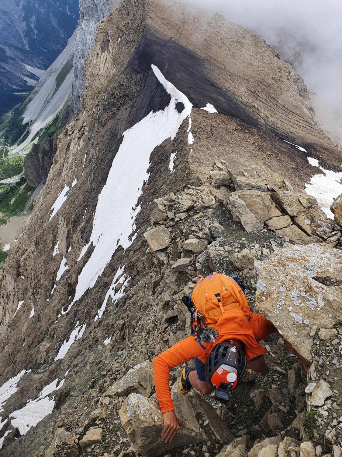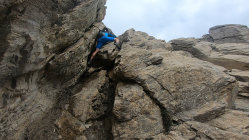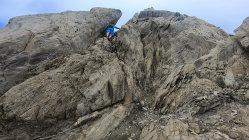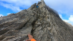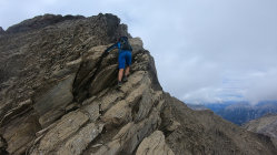 Leicht erschwerte Verhältnisse am Ostgrat durch Nässe. Der zum Teil erdige Boden war äußerst Rutschig und mit Vorsicht zu genießen.