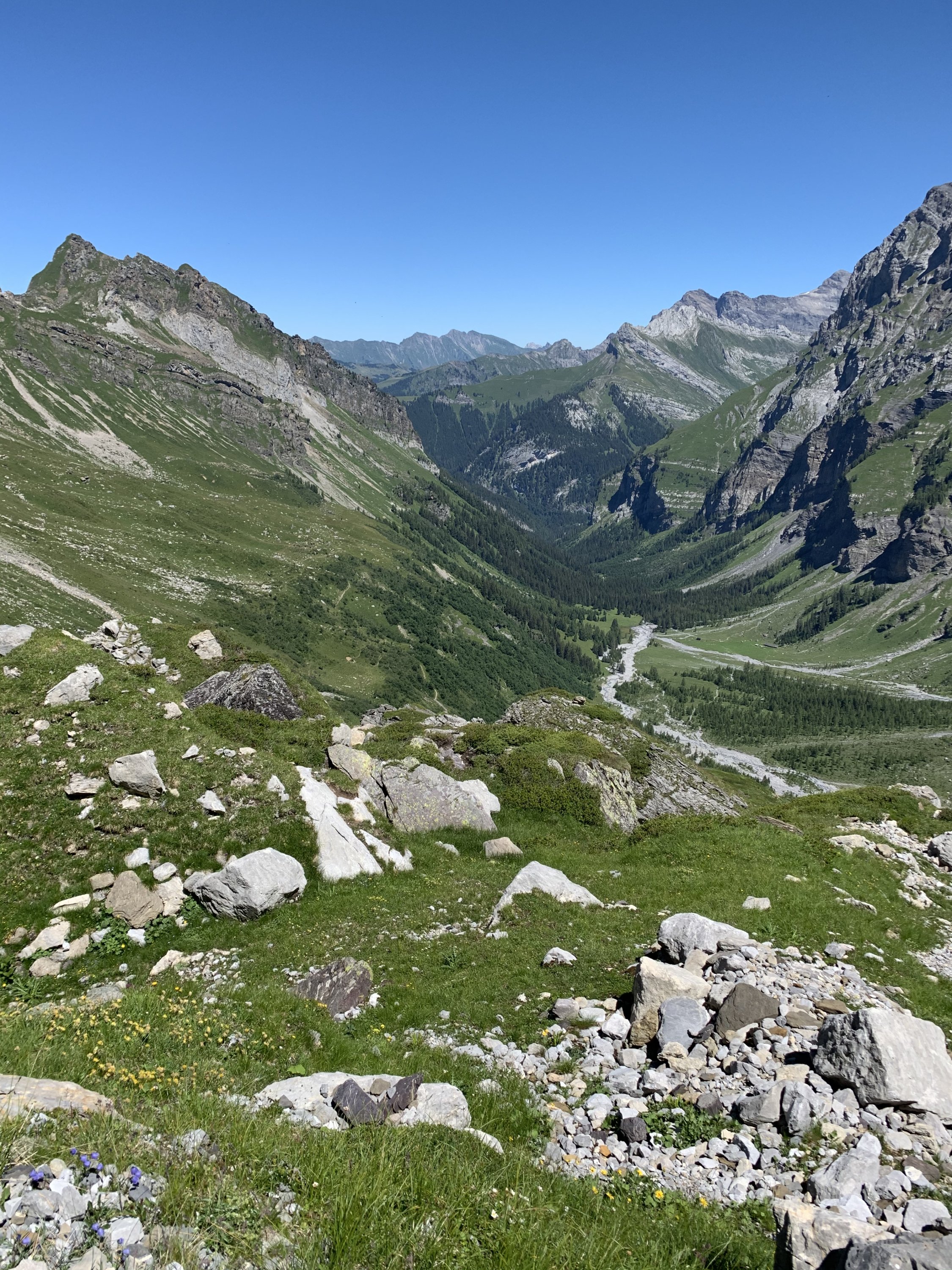 Im Vallon de Nant begegnet man einem chaotisch wirkendem Schutthaufen aus einem bunten Haufen verschiedener Kalke. Ich habe das Ganze einmal recherchiert - meine Vermutung, dass hier etwas ungewöhnliches vorliegt, hat sich bestätigt. Man bewegt sich auf einem einige 1000 Jahre alten Blockgletscher, der bis gegen 2100 m(!) herunterreicht. Das Ding ist auch noch in Bewegung. Wen es geologisch interessiert - hier gibt es Näheres: