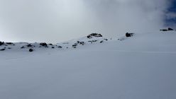 Erst nach dem harten Gipfelhang entdeckte ich meinen Vorgänger: der in Hinterrhein wohnhafte und legendäre, ehemalige Hüttenwart der Zapporthütte.