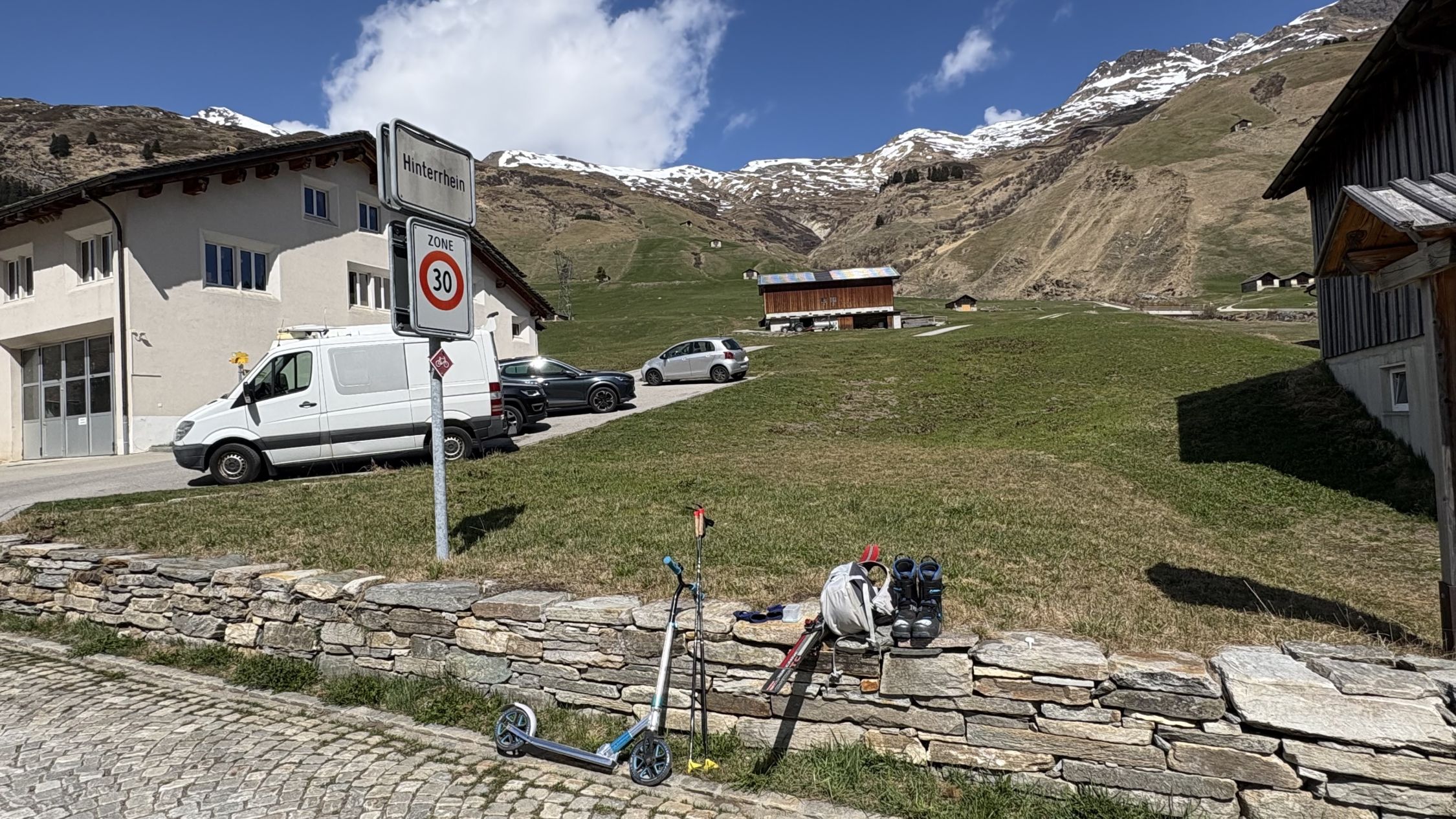 Mit dem Trotti erreichte ich schliesslich die postautomässig günstiger gelegene Haltestelle Nufenen.