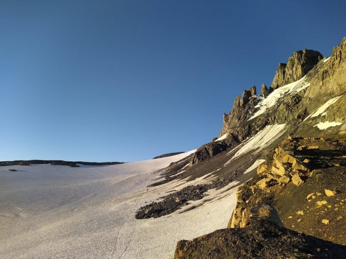 Beim letzten Gipfelaufstieg kann das Firnfeld umgangen werden, somit können die Steigeisen und Pickel unten deponiert werden.