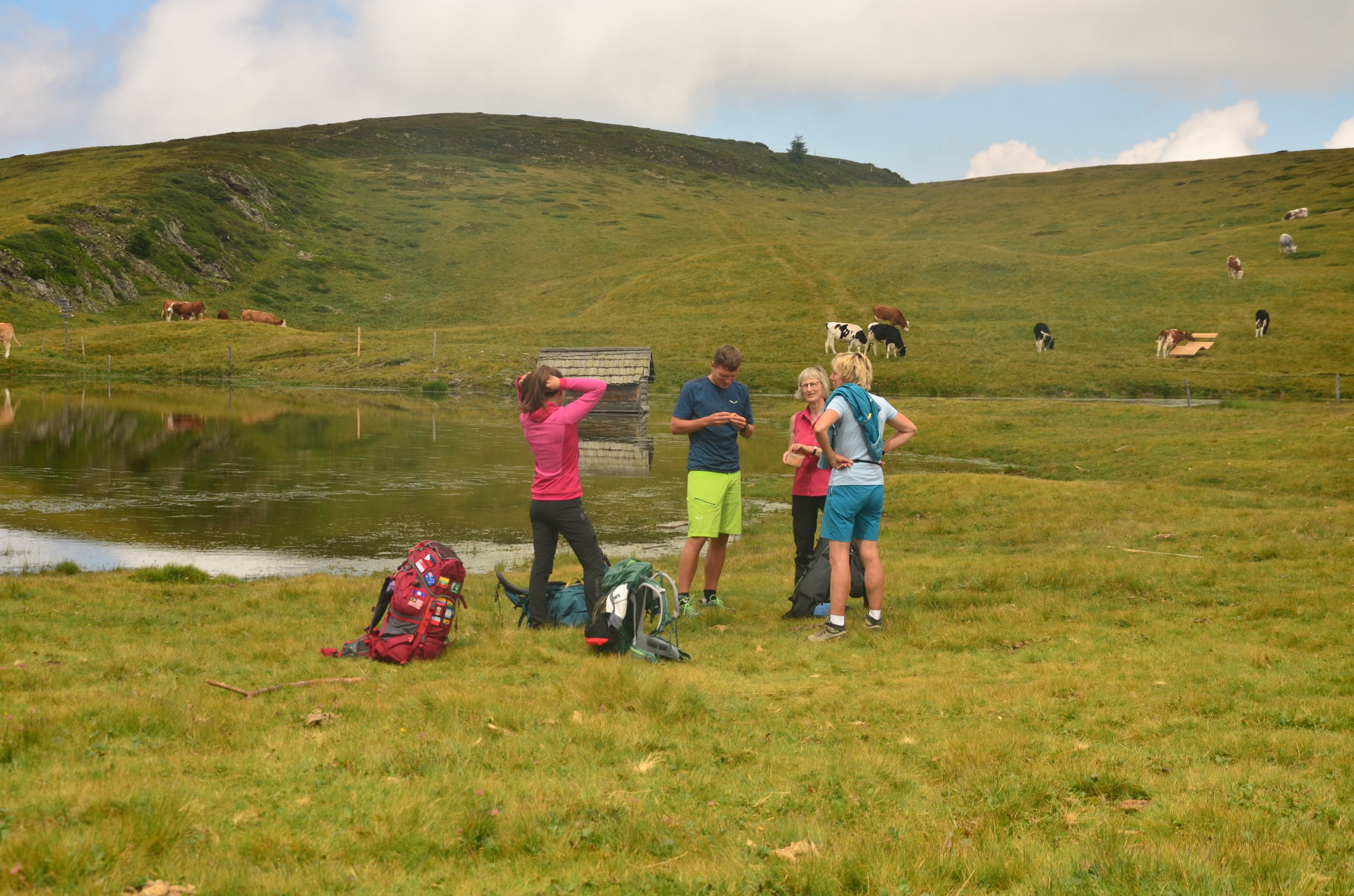 Vom Sportplatz von Wellschellen- Rina Vom Sportplatz von Wellschellen- Rina zuerst auf der Strasse nach Pecéi und über die Forststrasse zur Wieseralm und zum Glittnersee. Von dort Abstieg auf Weg 26 zur Munt da Rina und zurück zum Ausgangspunkt.
