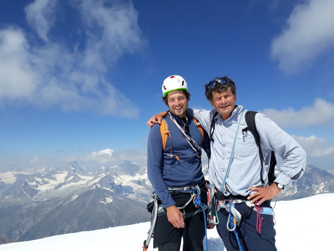> Hochachtung vor den Erstbegehern Alphons Lerjen, Pius Moser und Eduard Wyss-Dunant (1945 gab es noch Holzkeile statt Friends..)
