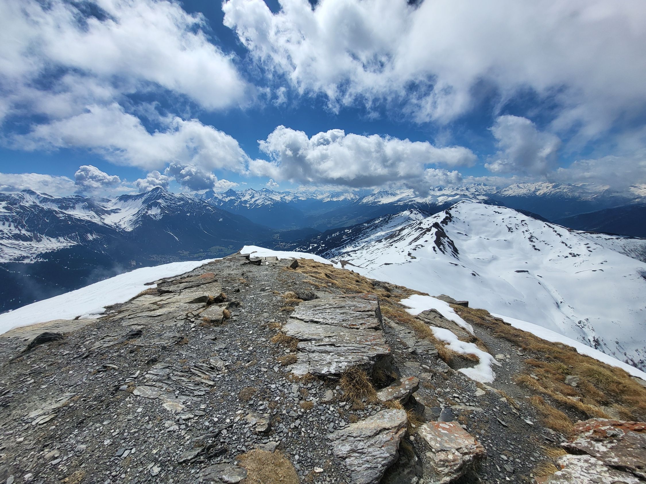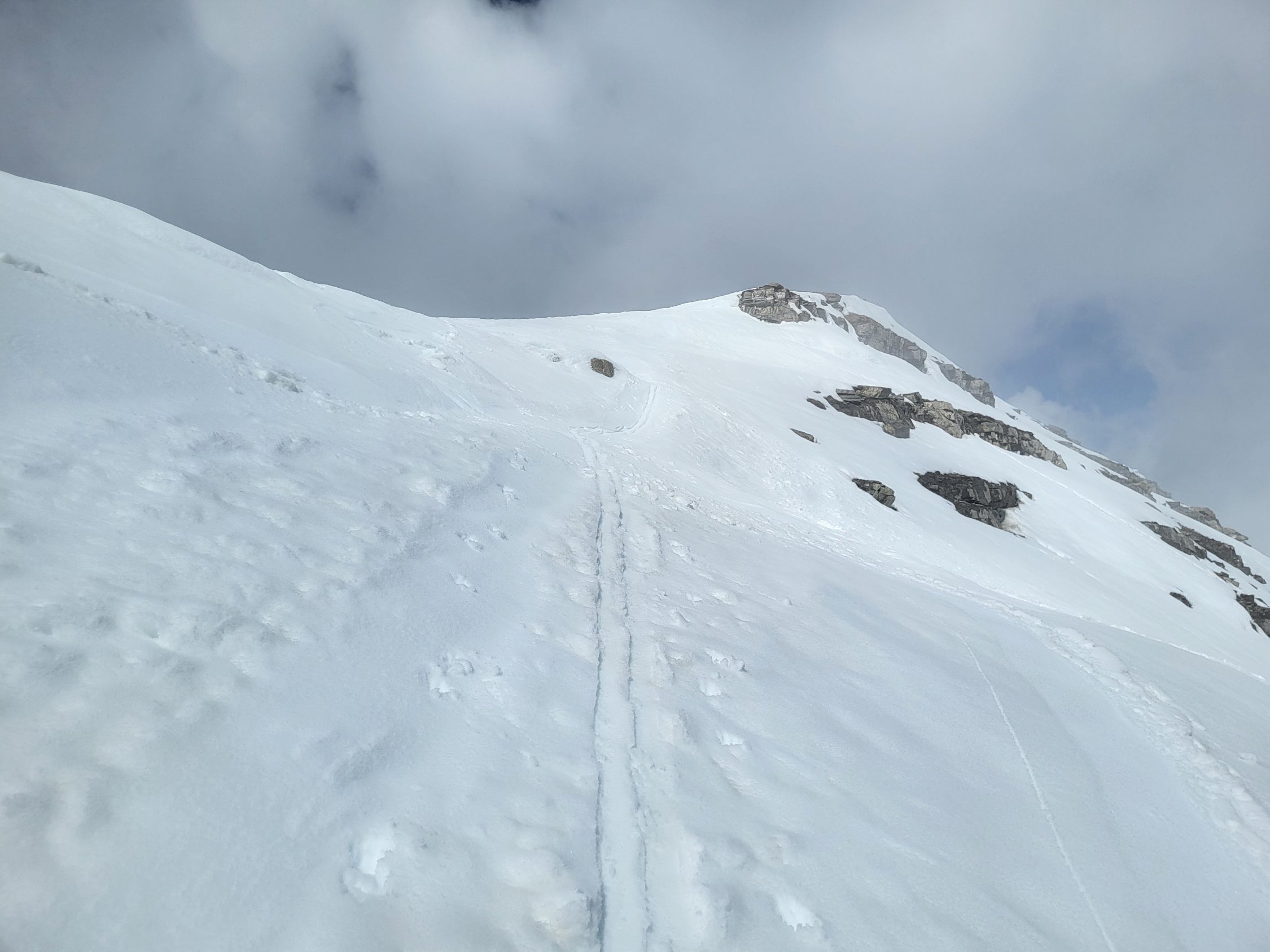Bin in Sartons oberhalb von Valbella gestartet und dann auf den Pisten hoch, zuerst zur Bergstation "Statzertälli", dann weiter auf der Piste bis kurz vor die Bergstation "Stätzerhorn Sattel". Von dort in den steilen Südosthang gequert, konnte von einer Spur zweier SAC-Tourenleiter (der Kleidung nach) profitieren (Vielen Dank!). Nach mehreren Spitzkehren dann den Südgrat erreicht und von dort nach 5 Min auf den Gipfel. Dank der guten Abstrahlung in der Nacht und den tiefen Temperaturen waren die Verhältnisse excellent, zuerst im Aufstieg pickelhart, dann leicht aufgeweicht, in der Abfahrt auf den Pisten sogar ab 12.00 traumhafter weicher, aber tragender Buttersulz. Wetter zuerst sonnig, dann Mischung Nebel und Sonne, in der Abfahrt meistens sonnig.