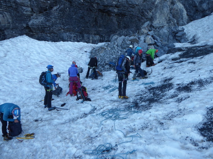 Bei den momentanen Temperaturen wird der Steilaufschwung unter dem Lombardi-Biwak in den nächsten Tagen ausgeapert sein.