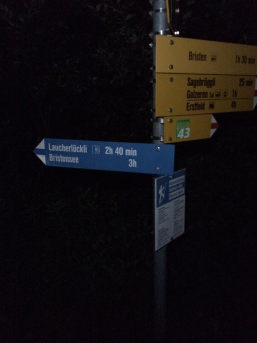Um 4:30 Uhr in Bristen auf dem hintersten Parkplatz gestartet und über Porthüsler den blau/weißen Weg zum Bristensee und dann den Normalweg auf den Gipfel. Rückzus über die Bläcki-Ranch zum Parkplatz.