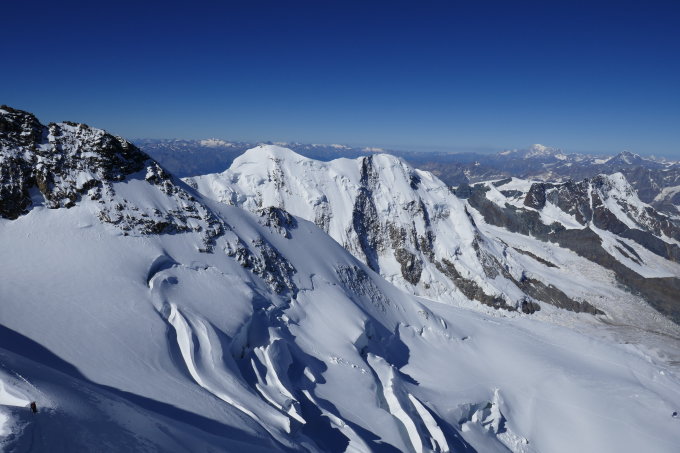 Nun ist gespurt.....sicher ein guter Zeitpunkt für eine Wiederholung. Es folgten einige Partien, welche von der Dufourspitze in den Silbersattel abseilten