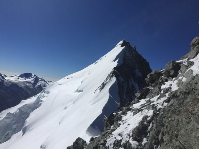 Spur zum Bishorn tipptopp. Es liegt noch etwas Schnee am Grat, der aber nicht stört. Abstieg Ostgrat gut aber lang.