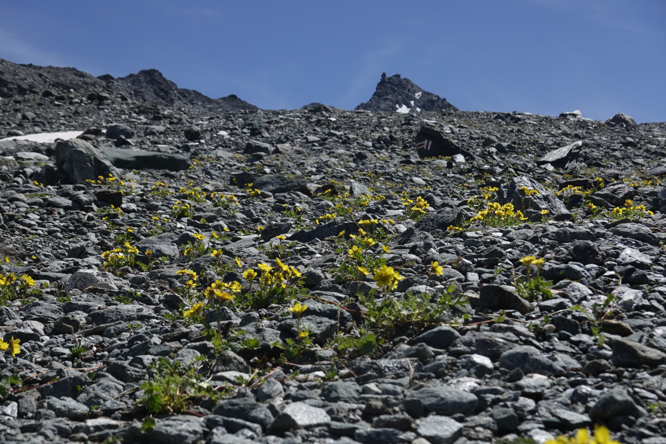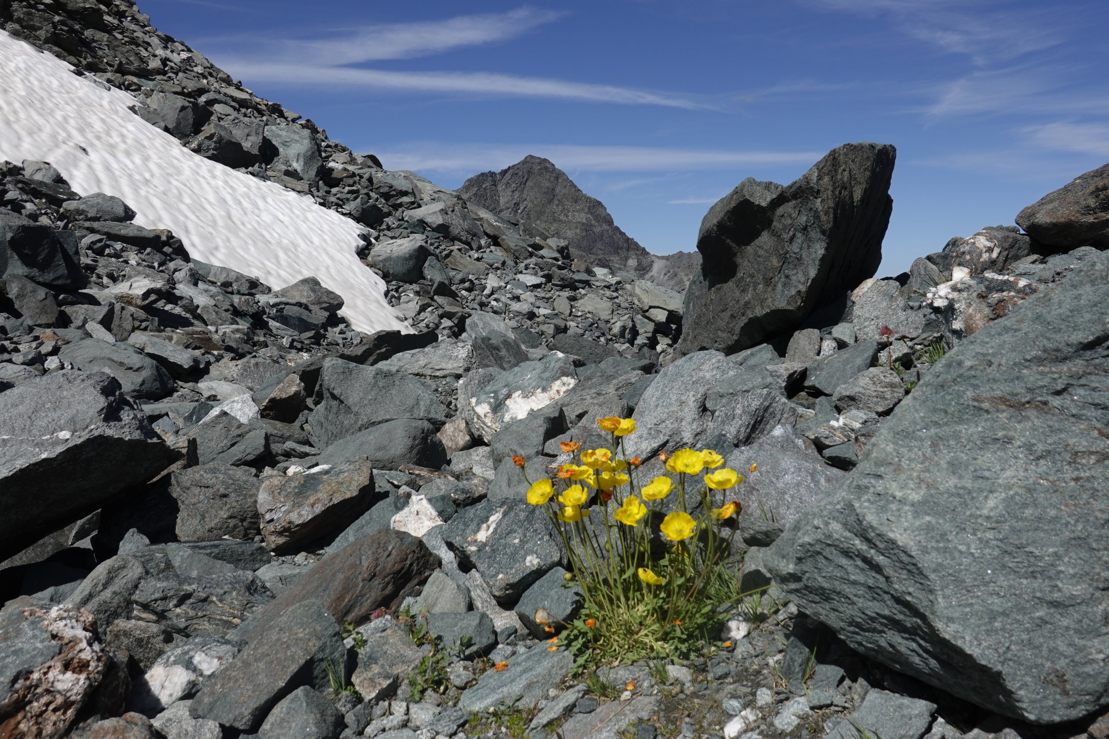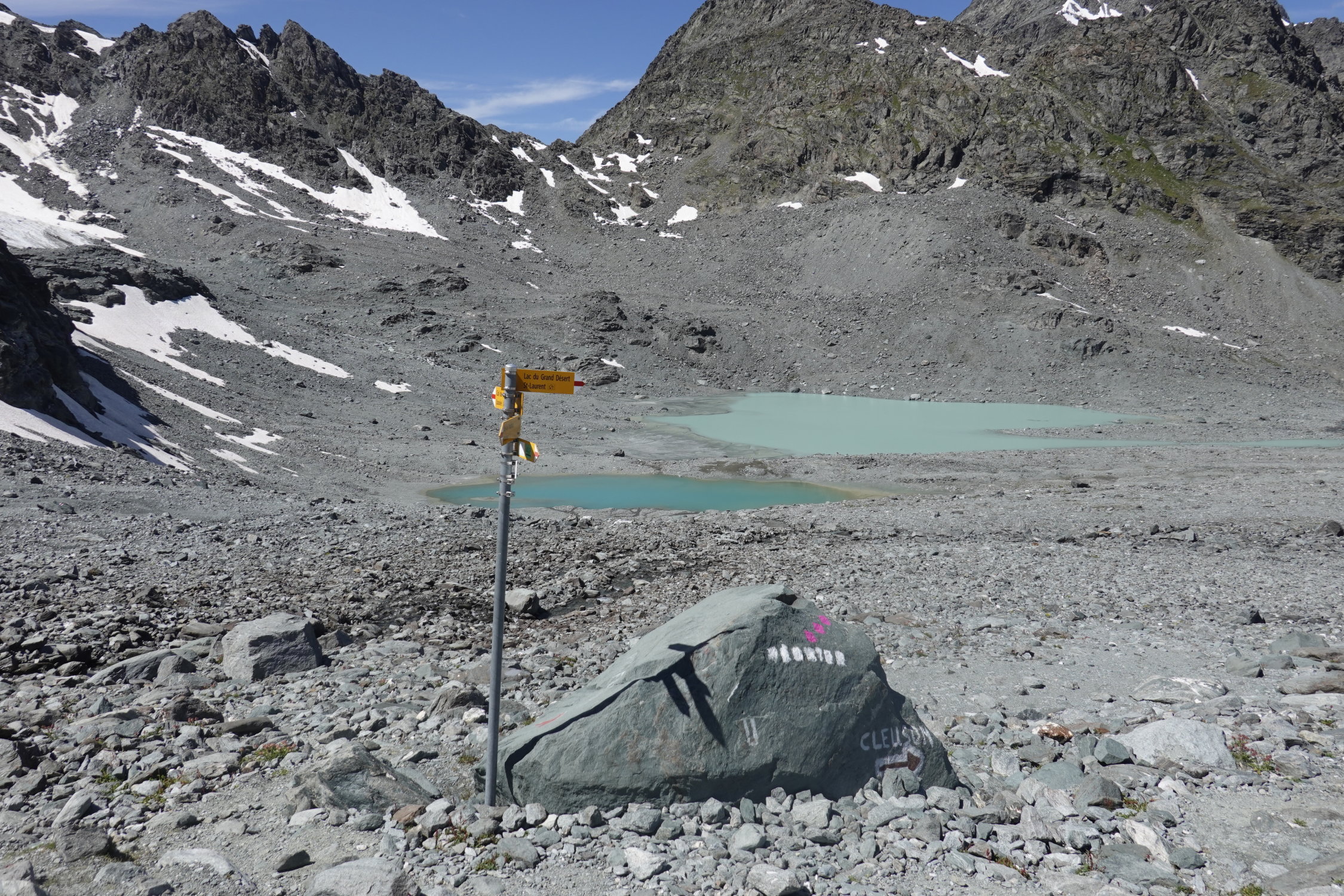 Der Felssporn im Aufstieg von der ersten Seenplatte (ca. 2870 m) auf das Felsplateau westlich davon weist aktuell noch ein kurzes, recht steiles Schneefeld auf. Zusammen mit den etwas ekligen Randklüften bei grobblockigem Schutt ergibt sich auf dem Niveau eines rot-weiss markierten Wanderweges eine etwas knifflige Situation (vgl. "Besonderes/Persönliches").