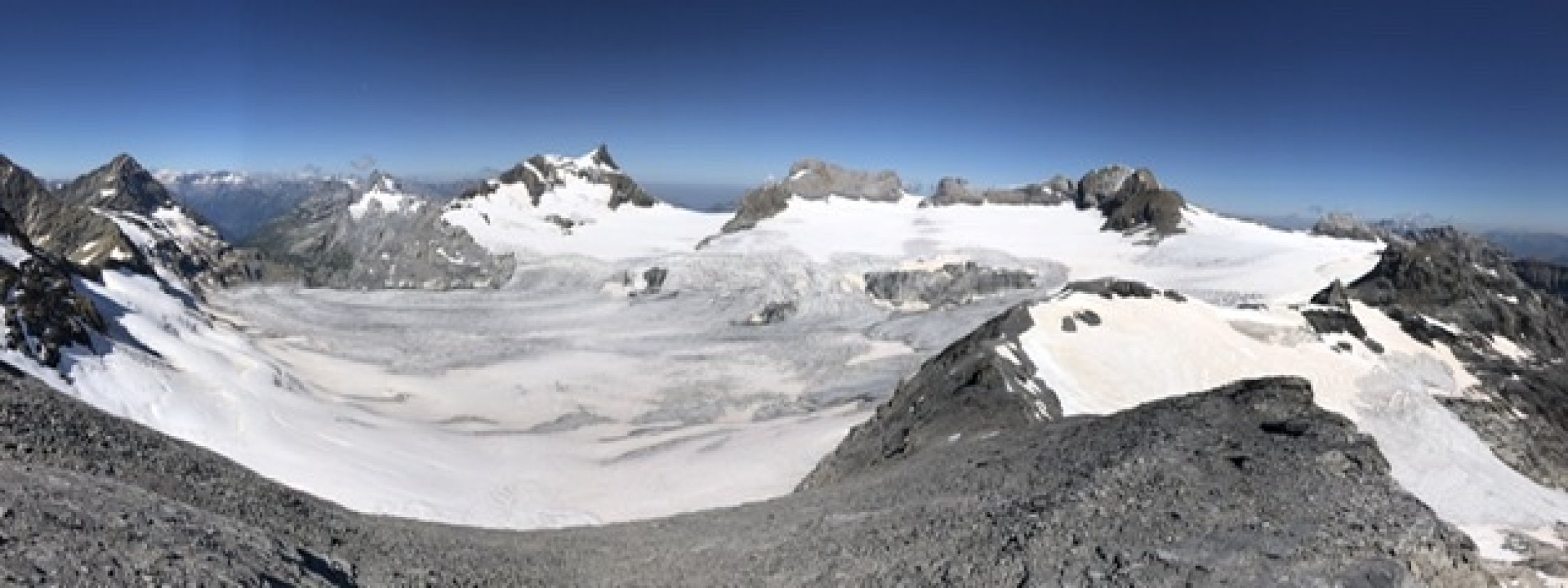 Claridenhütte, Ober Sand, Planurahütte. Abstieg über Sandpass nach Sumvitg. Hauptsächlich auf Wanderwegen, nur von der Planurahütte zum Gipfel und dann Abstieg über Sandpass manchmal weglos. Sandfirn am besten von Vorgipfel aus betreten und halb absteigen/queren.