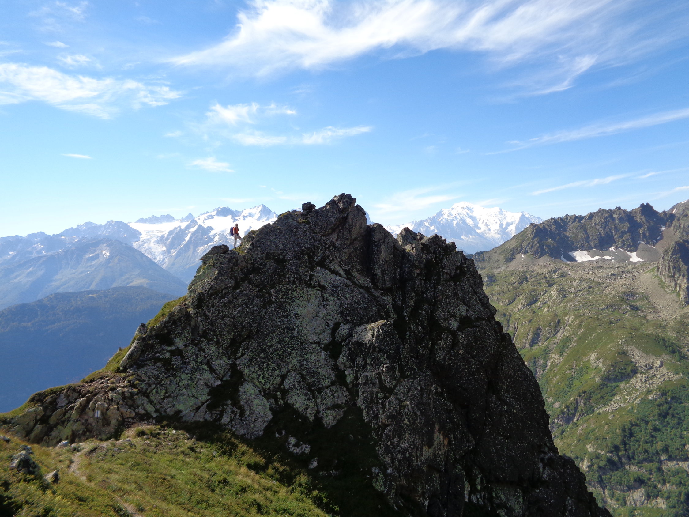 Vom Le Luisin hat man eine fantastische Aussicht auf den Mont Blanc 4810m und seine Trabanten. Hier wurde ein wichtiges Kapitel in der Geschichte vom Alpinismus geschrieben.