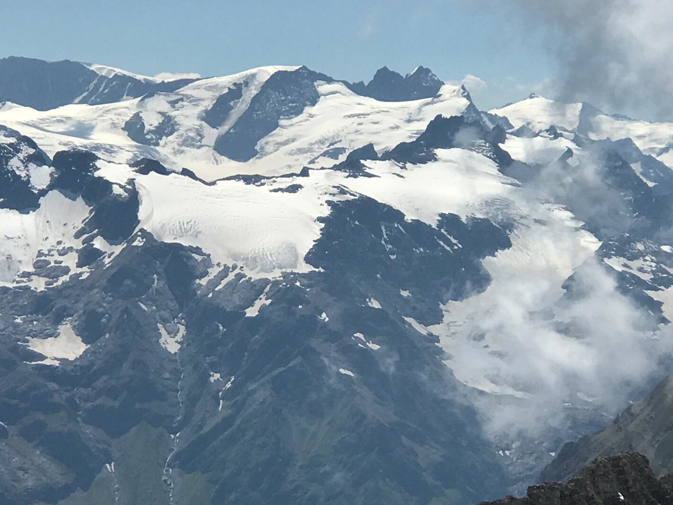 sehr warme Verhältnisse. Gegen Mittag Wolkenaufzug, der die höheren Gipfel und auch den Wissigstock zeitweise in Wolken hüllte. Es war im Wesentlichen ein wolkenfreier Tag vorhergesagt.