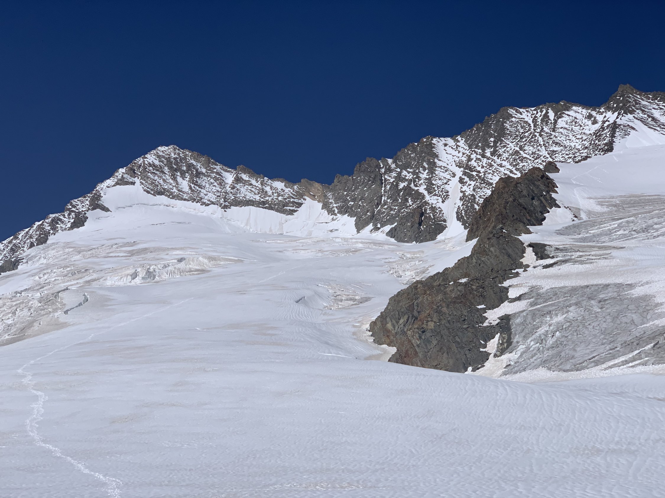 Fazit: Übergang über den Fieschersattel scheint mir gefährlich und nur Berggängern ratsam, die ortskundig sind und früh unterwegs sind. Zeitmanagement und Verhältnisse sind in Richtung West-->Ost besser zu kalkulieren, da der Anmarsch von der Finsteraarhornhütte weit ist und man die Westseite von oben schwer einsehen kann.