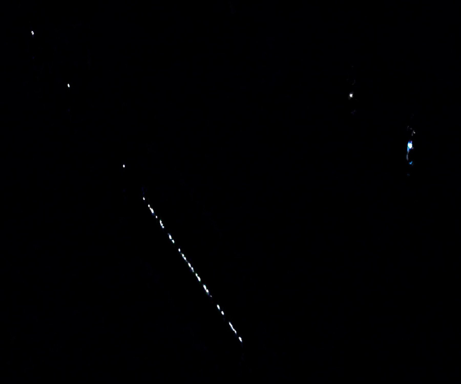 Im Aufstieg zum Bishorn hat um 3:28h eine Perlenschnur an Lichtern den Himmel erleuchtet. So etwas habe ich noch nie zuvor gesehen. Die Lichter waren viele Sekunden lang zu sehen, womit mir ein Photo gelungen ist. Nach etwas Recherche hat sich dies als eine am Tag zuvor von SpaceX ins All geschossene Konstellation aus 57 Satelliten gehandelt (Starlink-9, -10). Vorhersage zur Sichtbarkeit hier: https://www.heavens-above.com/StarlinkLaunchPasses.aspx?lat=46.0222&lng=7.7494&loc=Zermatt&alt=0&tz=CET