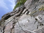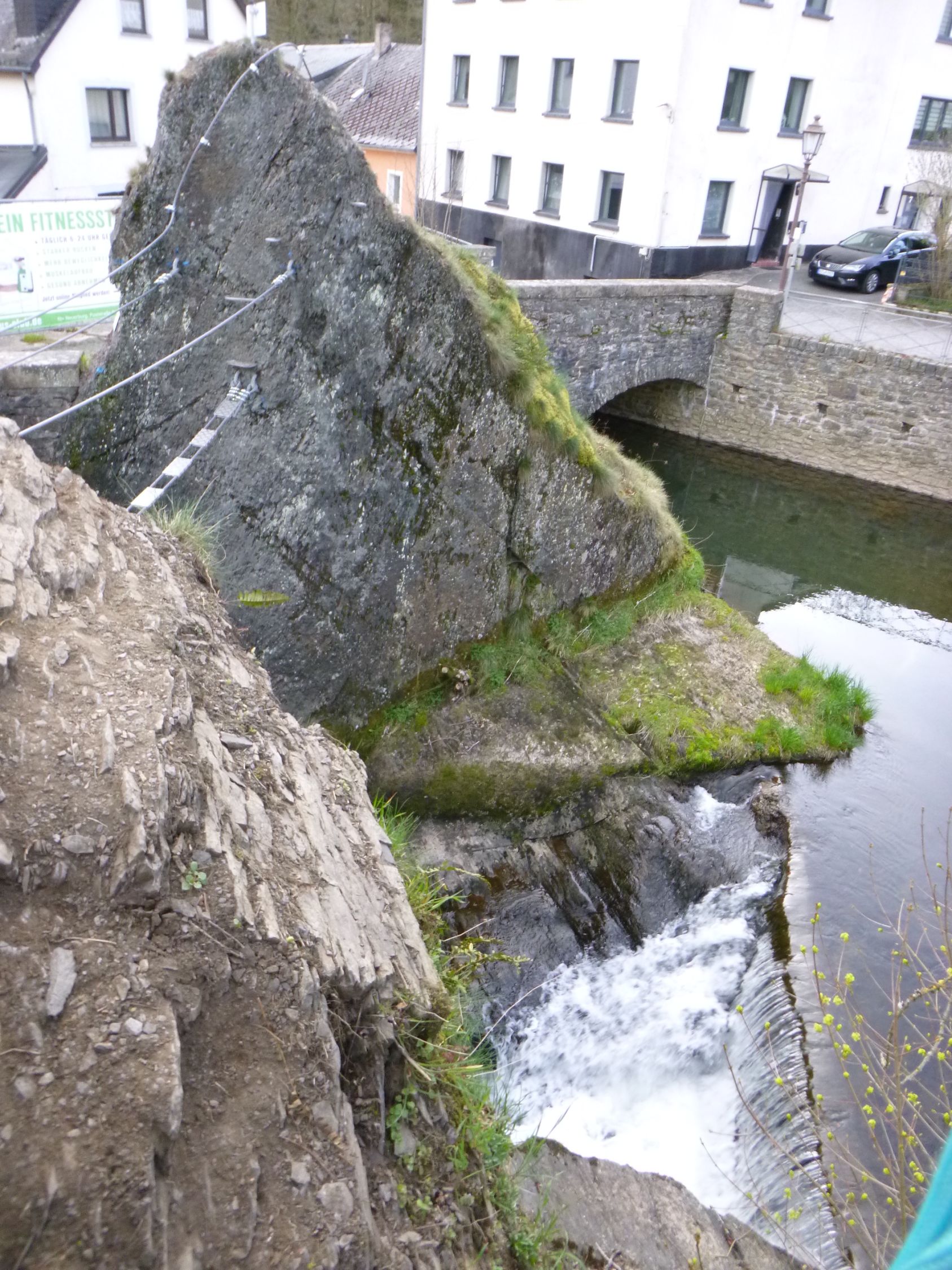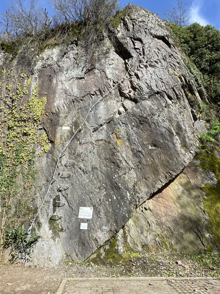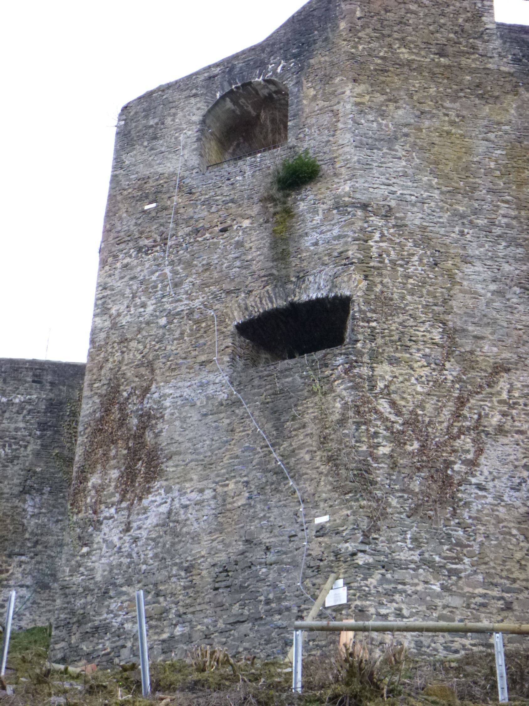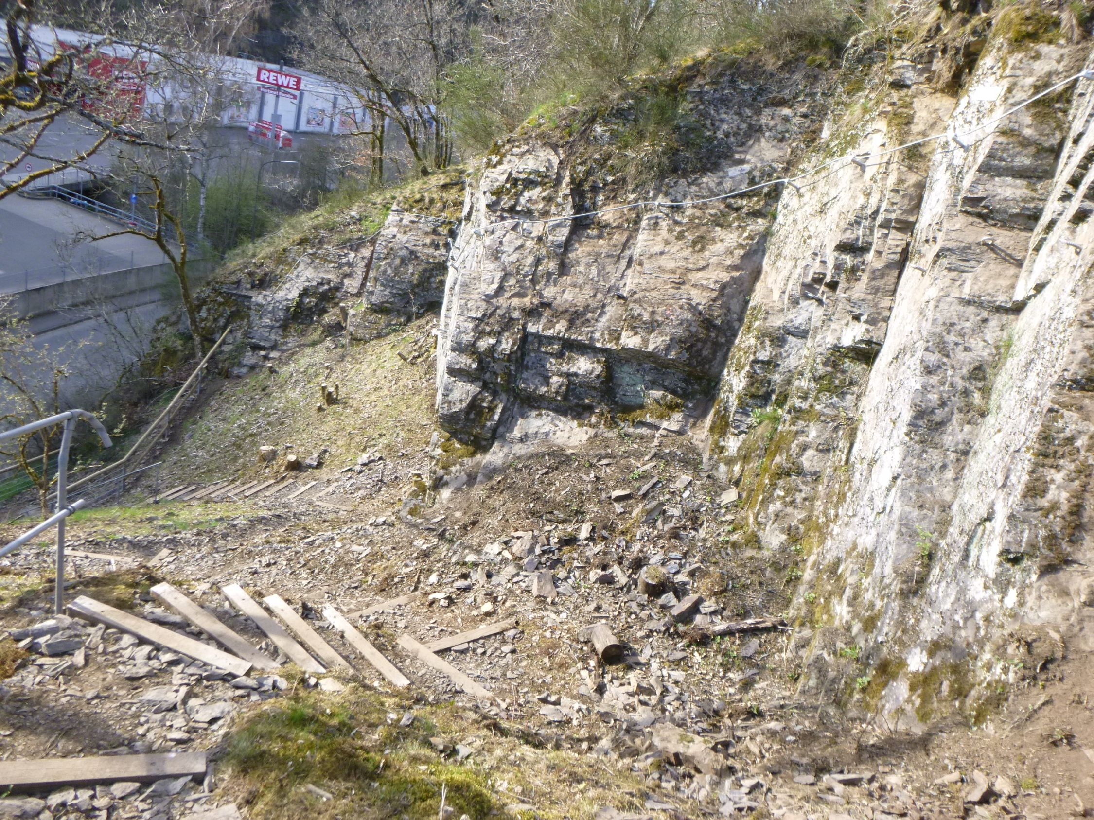Das Doppeltor am Zustiegsweg zum Einstieg der KS-Passage an der Nordbastion war verschlossen und mit rot-weißem Flatterband versehen. Ich bin darum am Ende der Tour vom oberen Fenster des Geschützturmes, wo sich der Ausstieg befindet, die 20 m hinunter und wieder hinaufgeklettert. Der kurze Steig war in Ordnung.